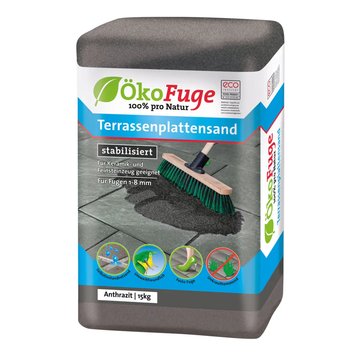 ÖkoFuge Terrassenplattensand 1-8 mm Anthrazit 15 kg – umweltfreundlich und selbstreparierend