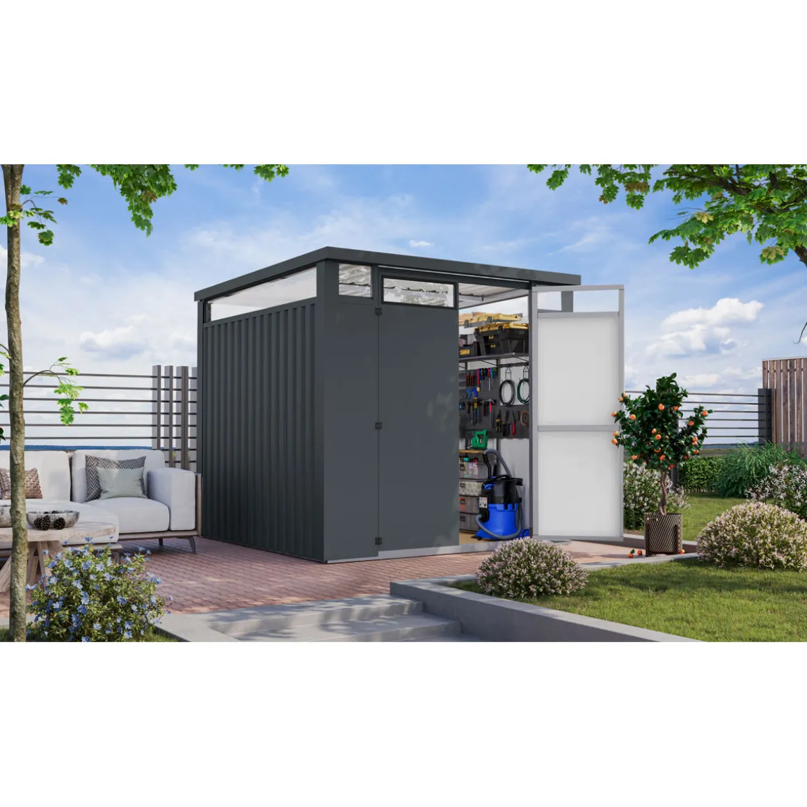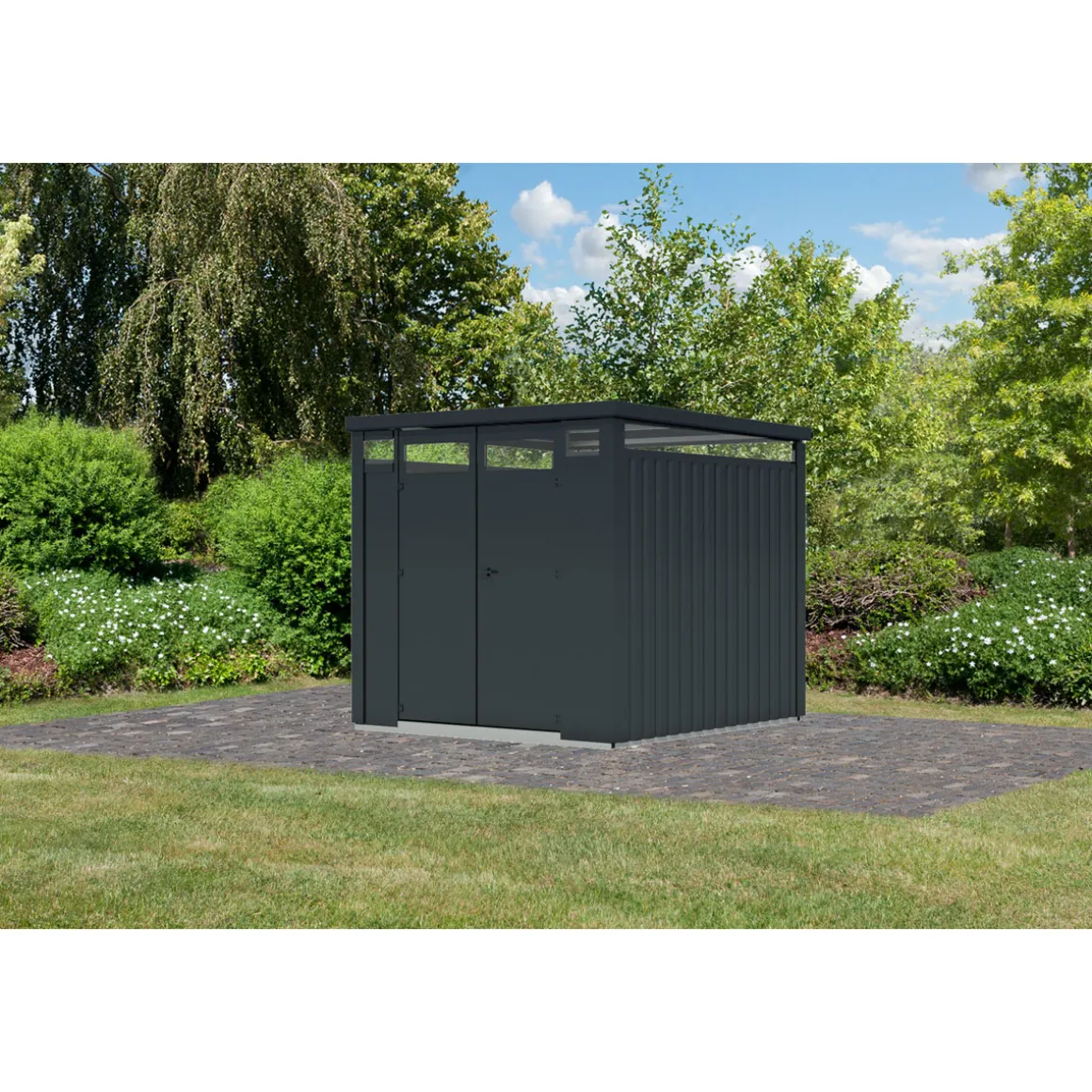 - Langlebig und stabil durch Verwendung von Metall an Ecken und Dach