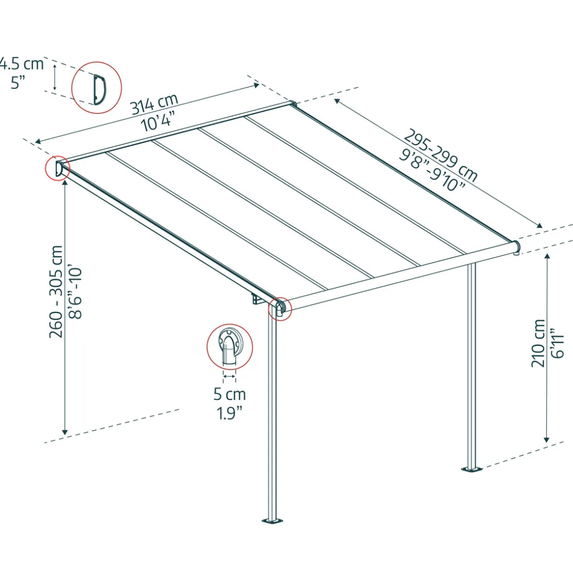 | Dachstand (BxT) (cm): | 314×295 |