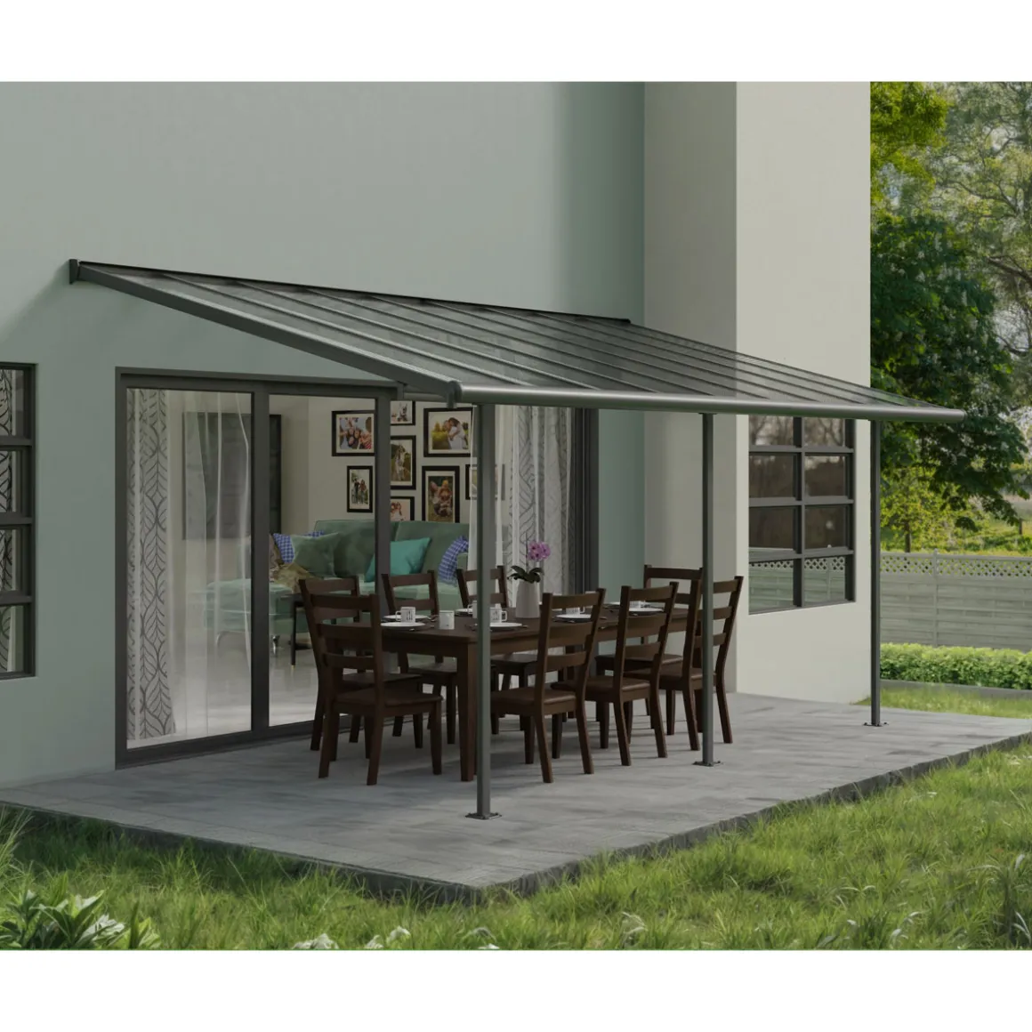 Palram Canopia Sierra Alu Terrassenüberdachung Polycarbonat 3×5,5 m grau