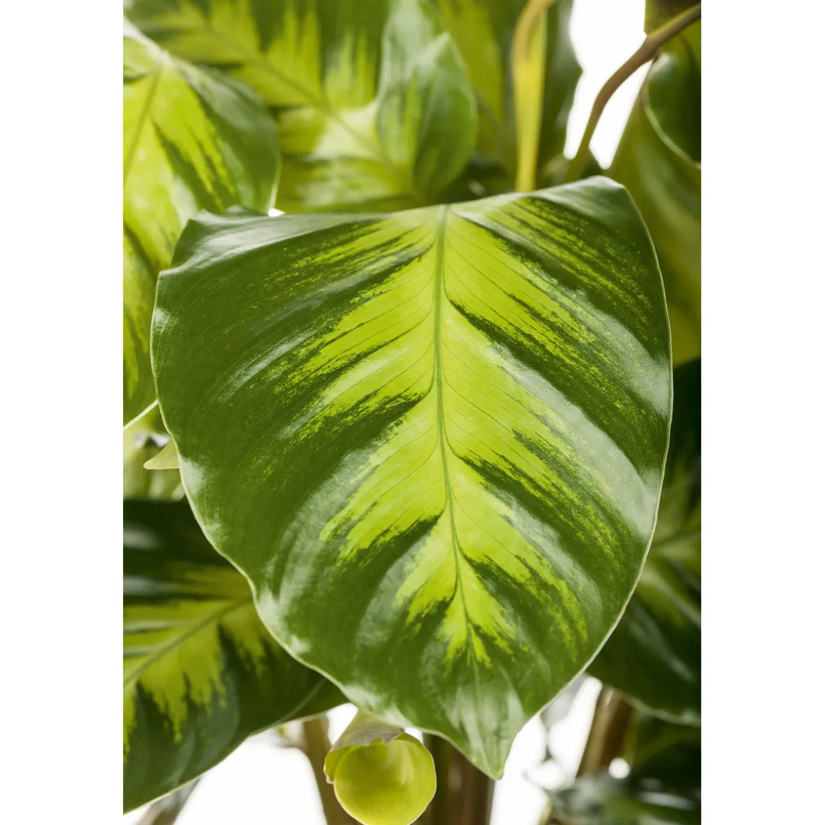 Mit der Korbmarante holen Sie sich ein Stück Tropen nach Hause. Die Calathea ist eine grüne Schönheit, die mit ihren großen Blättern und dem exotischen Muster jeden Raum aufwertet.