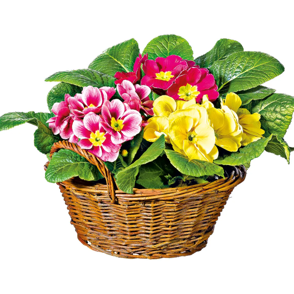 Mit dem Primelkorb holen Sie sich eine blühende Oase in Ihren Garten oder auf Ihren Balkon. Die Pflanze ist in verschiedenen Farben erhältlich und eignet sich ideal für halbschattige bis sonnige Standorte.
