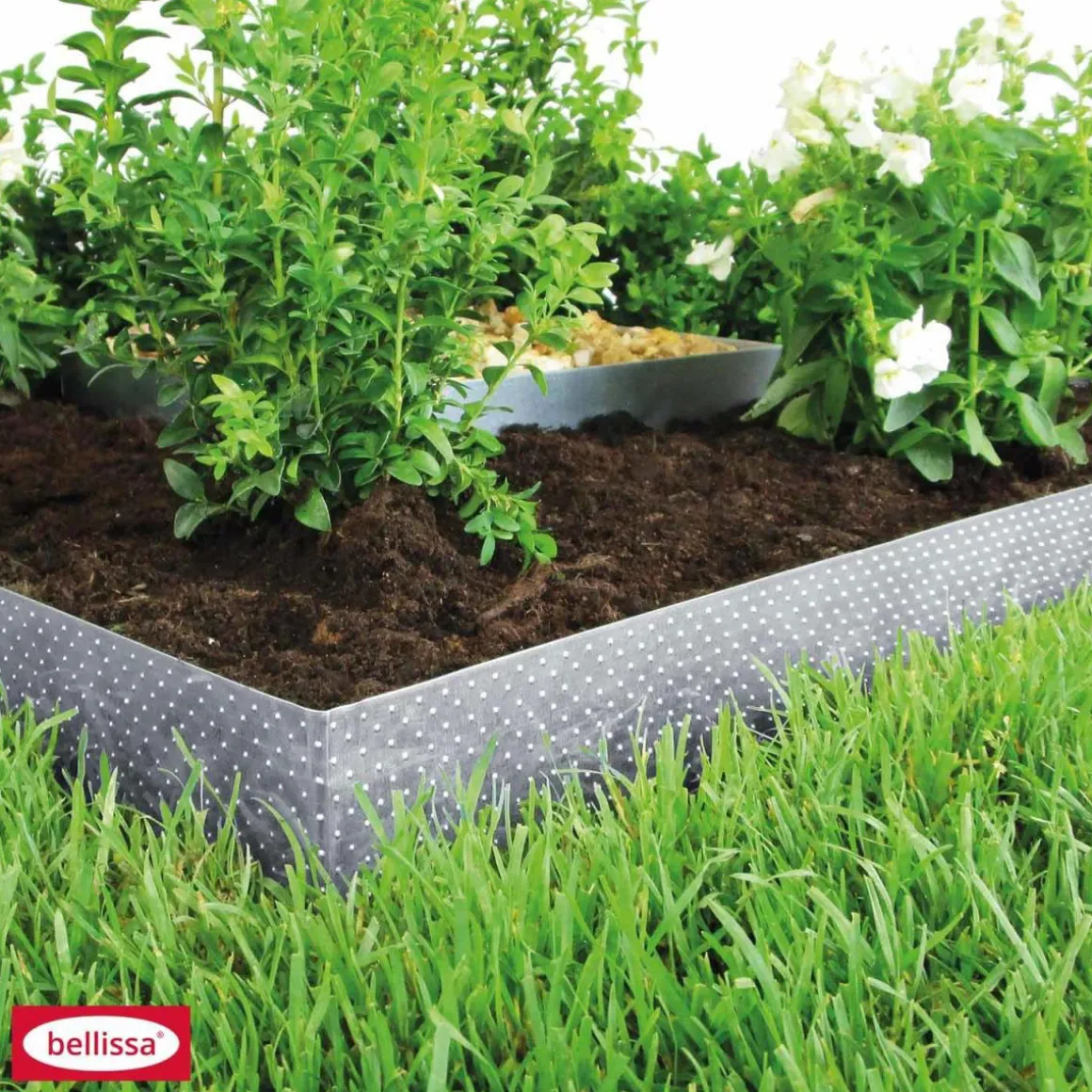 Mit dem BELLISSA Rasenkantenband mit Noppenstruktur schaffen Sie eine klare Abgrenzung zwischen Ihrem Rasen und Beeten, Wegen oder anderen Flächen. Die silberne Grundfarbe und die Noppenstruktur verleihen der Kante eine moderne Optik. Das verzinkte Stahlblech ist witterungsbeständig und sorgt für eine lange Lebensdauer.
