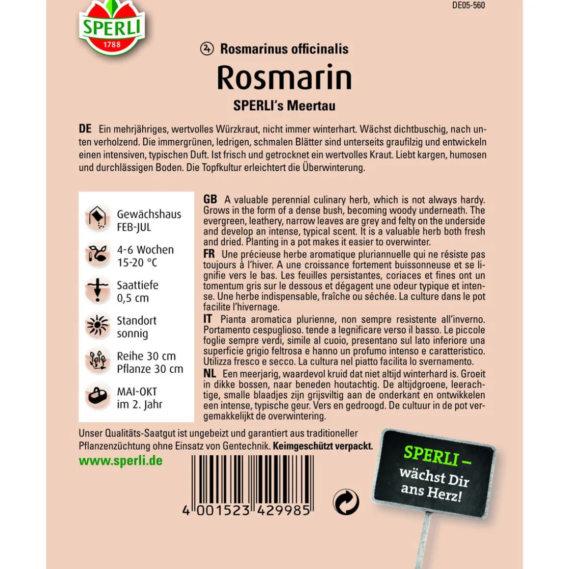 Holen Sie sich mit dem Rosmarin SPERLI´s Meertau die duftende Frische des Mittelmeers direkt in Ihren Garten oder auf den Balkon! Dieses mehrjährige Kraut begeistert nicht nur durch seinen intensiven, aromatischen Duft, sondern auch durch seine Vielseitigkeit in der Küche. Ob als Highlight für Ihre mediterranen Gerichte oder als dekorative Ergänzung im Kräuterbeet – dieser Rosmarin ist ein echter Allrounder. Mit einer optimalen Keimtemperatur von 15 °C bis 20 °C und einem sonnigen Standort entfaltet er sein volles Potenzial und sorgt für eine reiche Ernte über mehrere Monate hinweg.