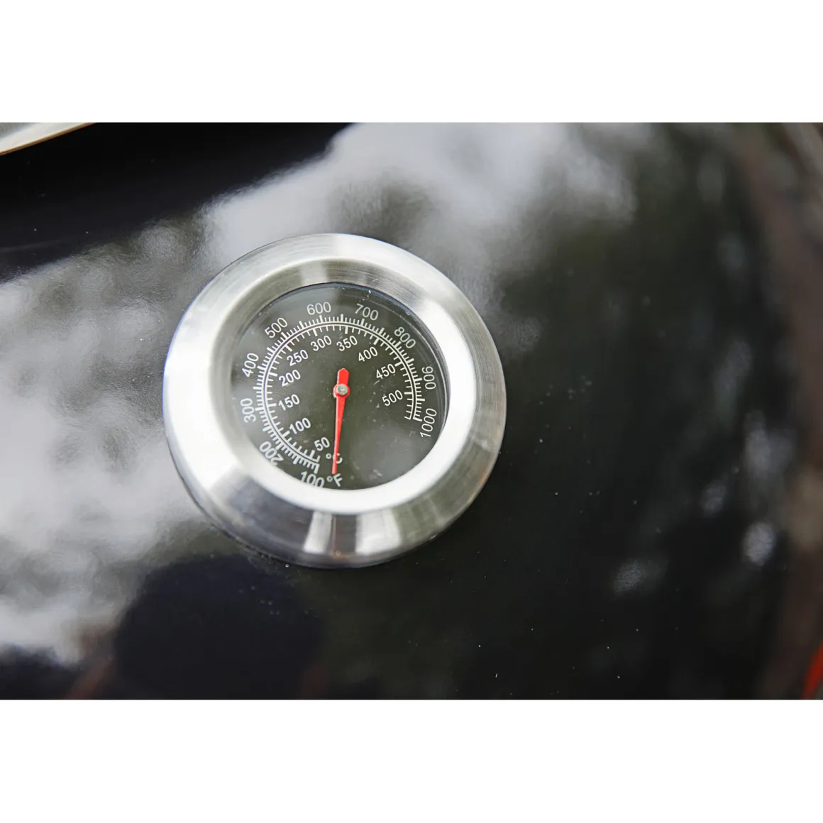 - Schwarzer emaillierter Deckel mit integriertem Thermometer