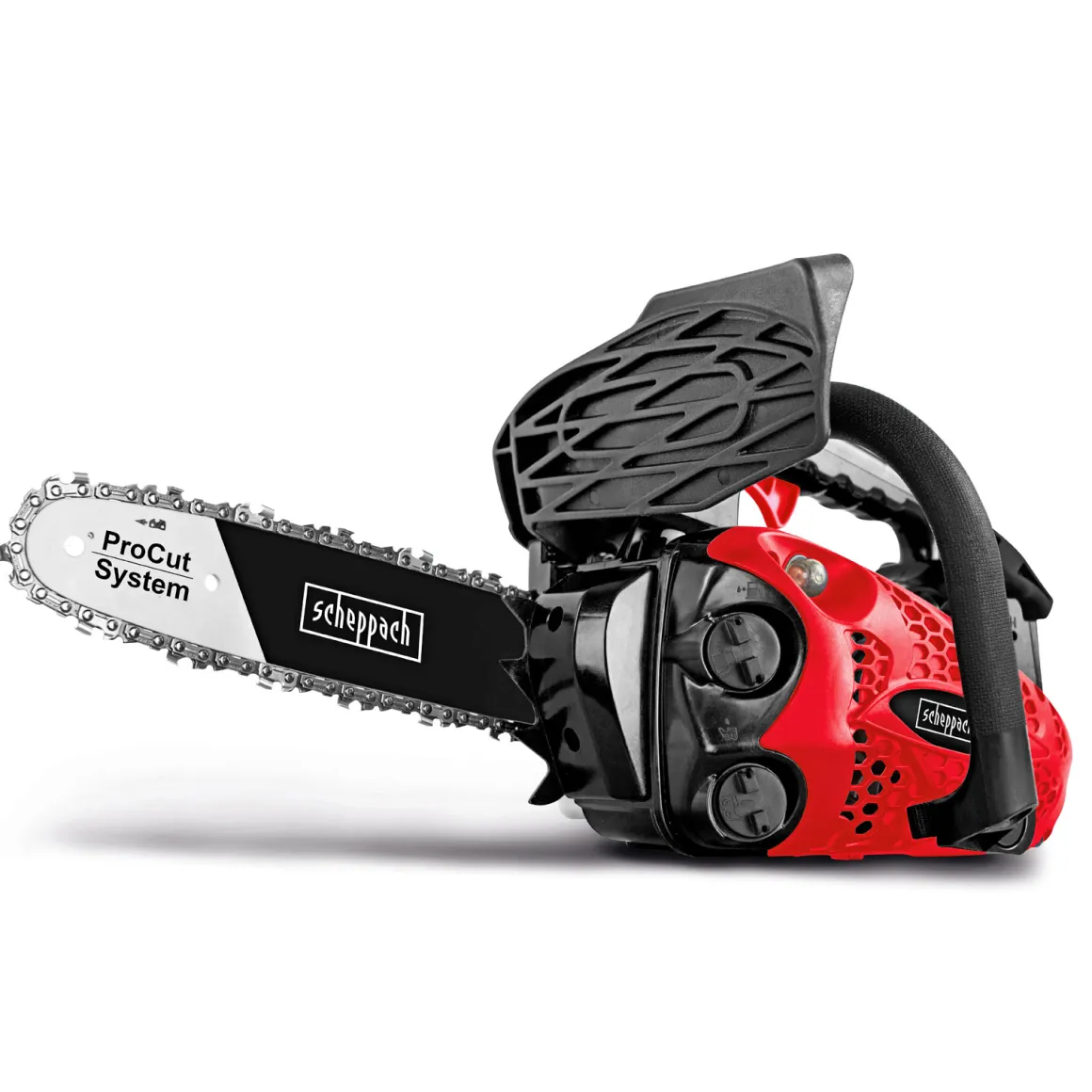 Die Scheppach Benzinkettensäge CSP2540 ist ein kraftvolles Werkzeug für den anspruchsvollen Einsatz. Mit einer Motorleistung von 0,7 kW und einem Hubraum von 25,4 cm³ ist sie ideal für den Einsatz im Garten oder Wald geeignet.