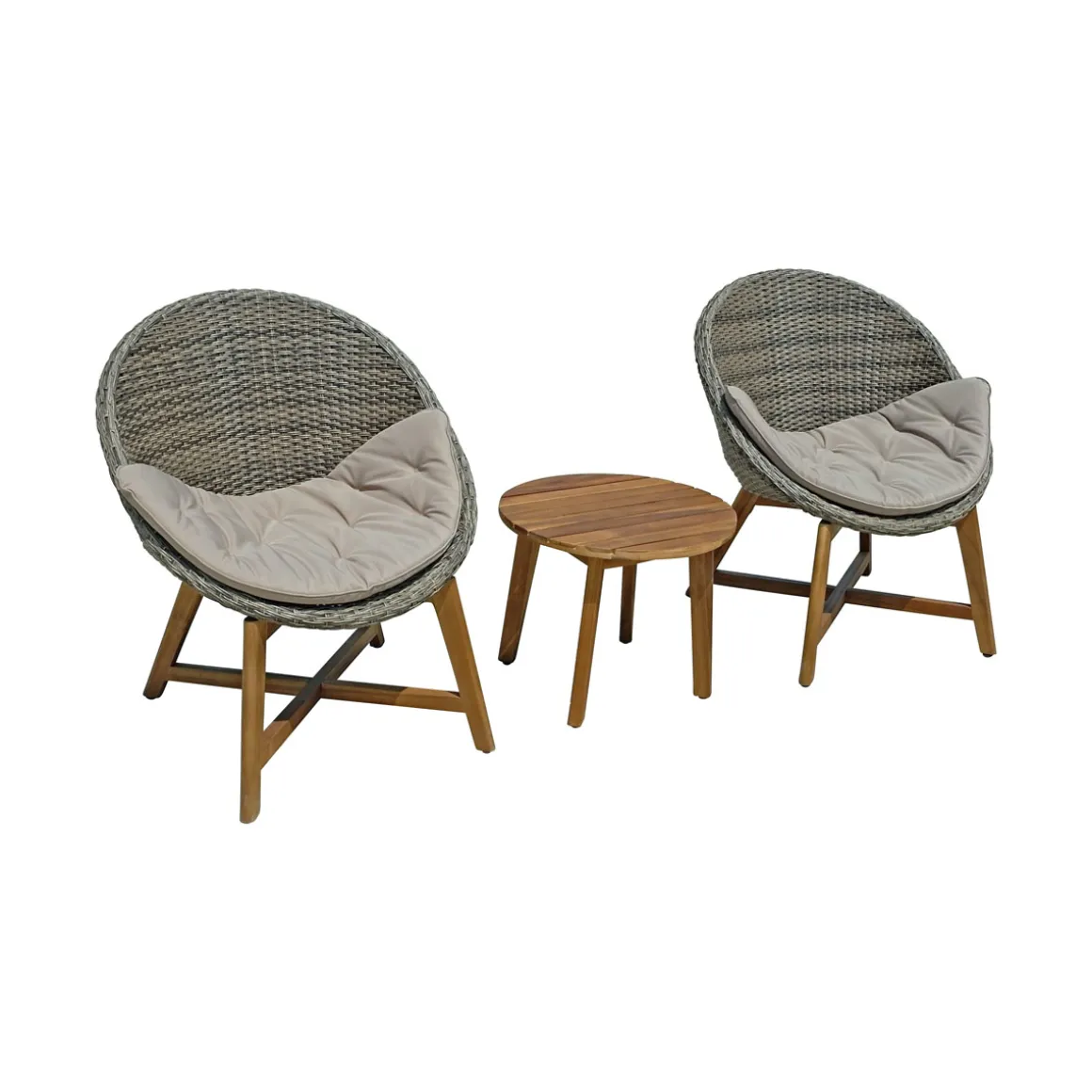 - Lieferumfang umfasst einen Beistelltisch, zwei Sessel mit Auflagen – alles perfekt abgestimmt