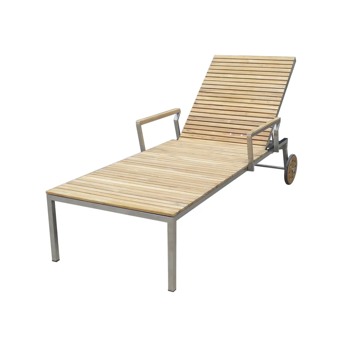 Die Sonnenliege Denver ist wie gemacht für alle Kunden, die ihren Außenbereich mit Stil gestalten möchten. Egal ob Sie einen großen Garten haben oder nur eine kleine Terrasse – diese Liege passt überall hin! Dank ihrer hochwertigen Materialien wie Teakholz und Stahl überzeugt sie nicht nur durch ihre Langlebigkeit, sondern auch durch ihr edles Design. Besonders praktisch sind die integrierten Rollen: Damit können Sie ganz einfach den perfekten Platz unter der Sonne finden, ohne viel Aufwand betreiben zu müssen. Die verstellbare Rückenlehne macht es Ihnen leicht, genau die richtige Position zum Relaxen einzustellen – sei es flach liegend zum Sonnenbaden oder leicht geneigt fürs gemütliche Lesen eines Buchs.