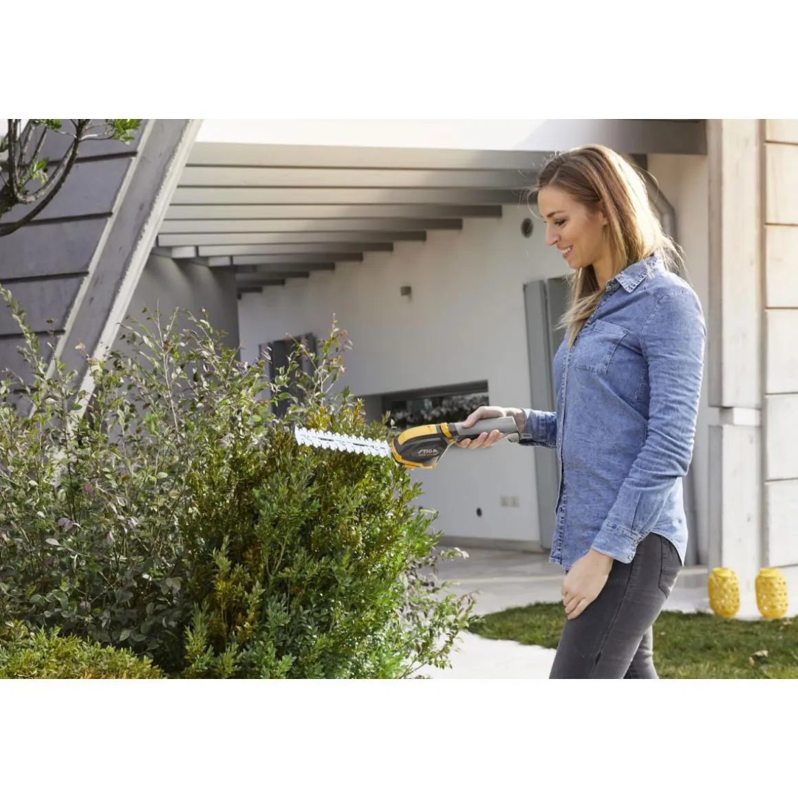 Die Stiga Akku Gras- und Strauchschere SGM 102 AE überzeugt durch ihre einfache Handhabung sowie ihre hohe Leistungsfähigkeit bei einer Laufzeit von bis zu zwei Stunden. Mit ihrem werkzeuglosen Messerwechsel sowie dem integrierten Li-Ionen-Akku bietet sie zudem höchste Flexibilität beim Einsatz im Garten oder auf der Terrasse. Die mitgelieferte Grasschere sowie Heckenschere machen das Set komplett.