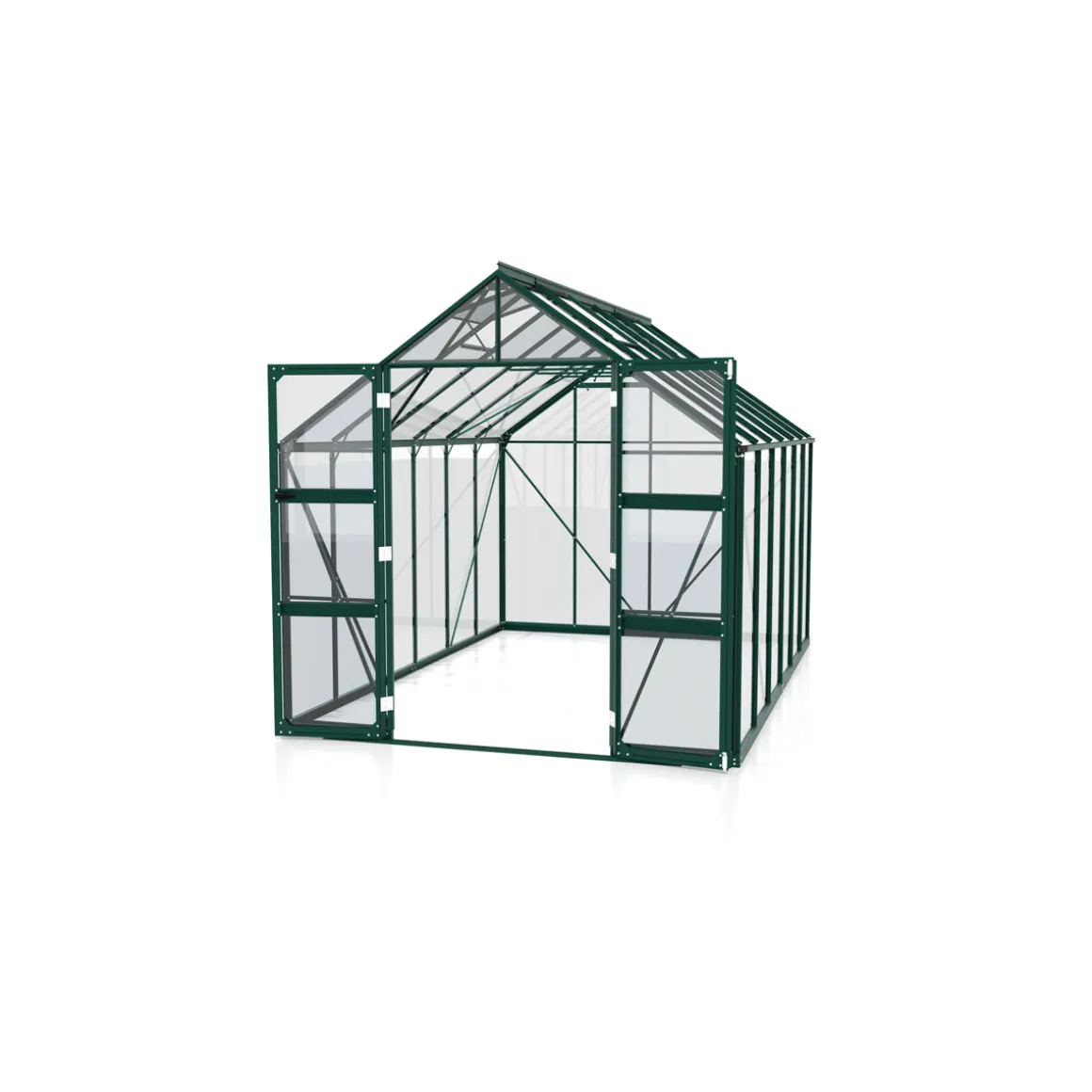 Das Vitavia Gewächshaus Domus ist ein freistehendes Gewächshaus mit einer Grundfläche von 9,9 m² und einem klassischen Satteldach. Es bietet ausreichend Platz für Ihre Pflanzen und schützt sie vor Wind und Wetter. Mit seinen pulverbeschichteten Aluminiumprofilen in smaragdgrüner Farbe sieht es zudem noch sehr ansprechend aus.
