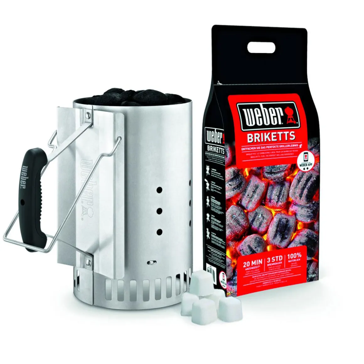 Weber Anzündset Anzündkamin und 2kg Brikett – Schnell und einfach zum perfekten Grillgenuss