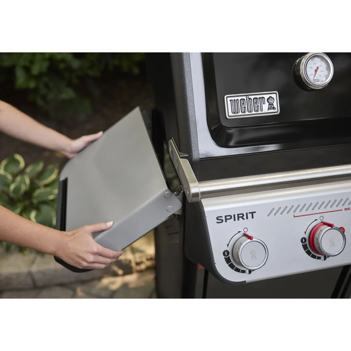 - Schnappbefestigung an den Seitentischen zur praktischen Aufbewahrung Ihres Zubehörs während des Grillens.