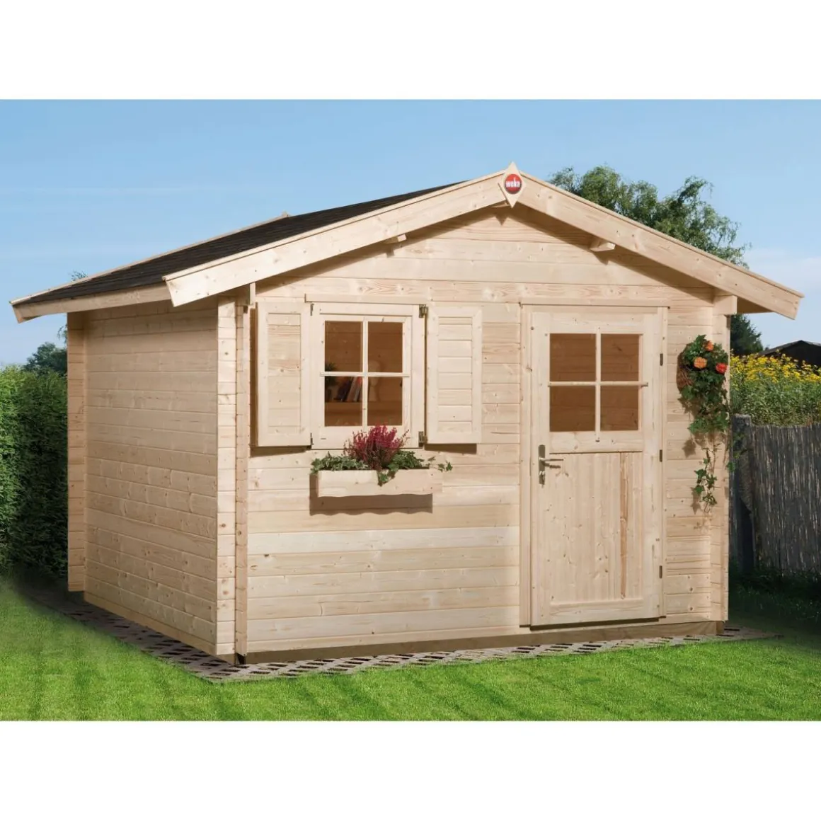 Mit dem Weka Gartenhaus erhalten Sie ein qualitativ hochwertiges Gerät in Premium-Qualität. Dank der stabilen Blockbohlenkonstruktion aus europäischer Fichte und der massiven Holzdacheindeckung sind Sie vor Wind und Wetter geschützt. Die inkludierten Fenster sorgen zudem für genügend Licht im Inneren des Hauses. Der Fußboden aus Massivholzbrettern rundet das Gesamtpaket ab.