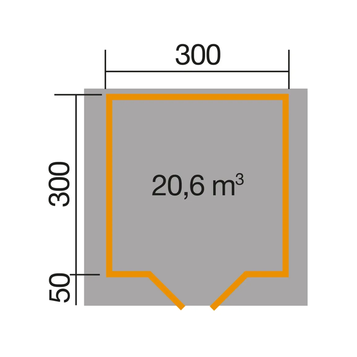 - Außenmaße (BxLxH=Trauf): 333x360x261 cm