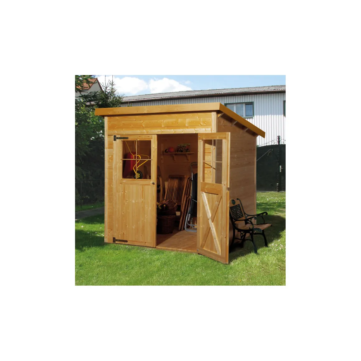 Mit dem Weka Gartenhaus 325 Größe 2 lasiert erhalten Sie ein hochwertiges Gerätehaus, das sich optimal für die Aufbewahrung Ihrer Gartengeräte eignet. Mit einer Grundfläche von 3,88 m² bietet es ausreichend Platz und ist dank des Pultdachs mit einer Schneelast von bis zu 76 kg/m² auch für den Winter gut gerüstet.