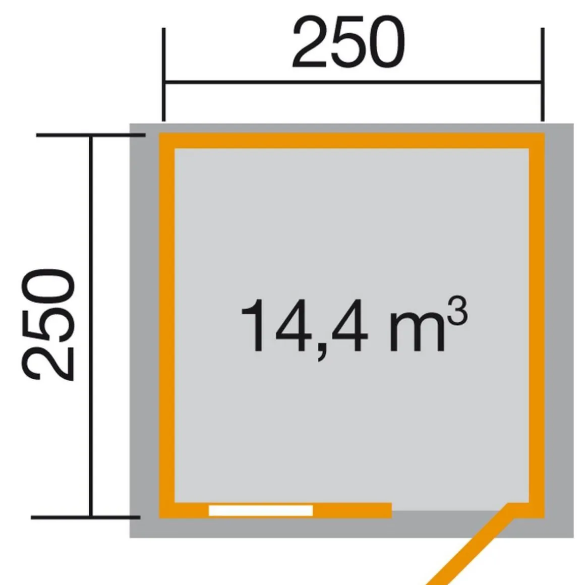- Grundfläche: Rechteck, Grundfläche (m²): 6,25 m², Umbauter Raum (m³) (m³):144