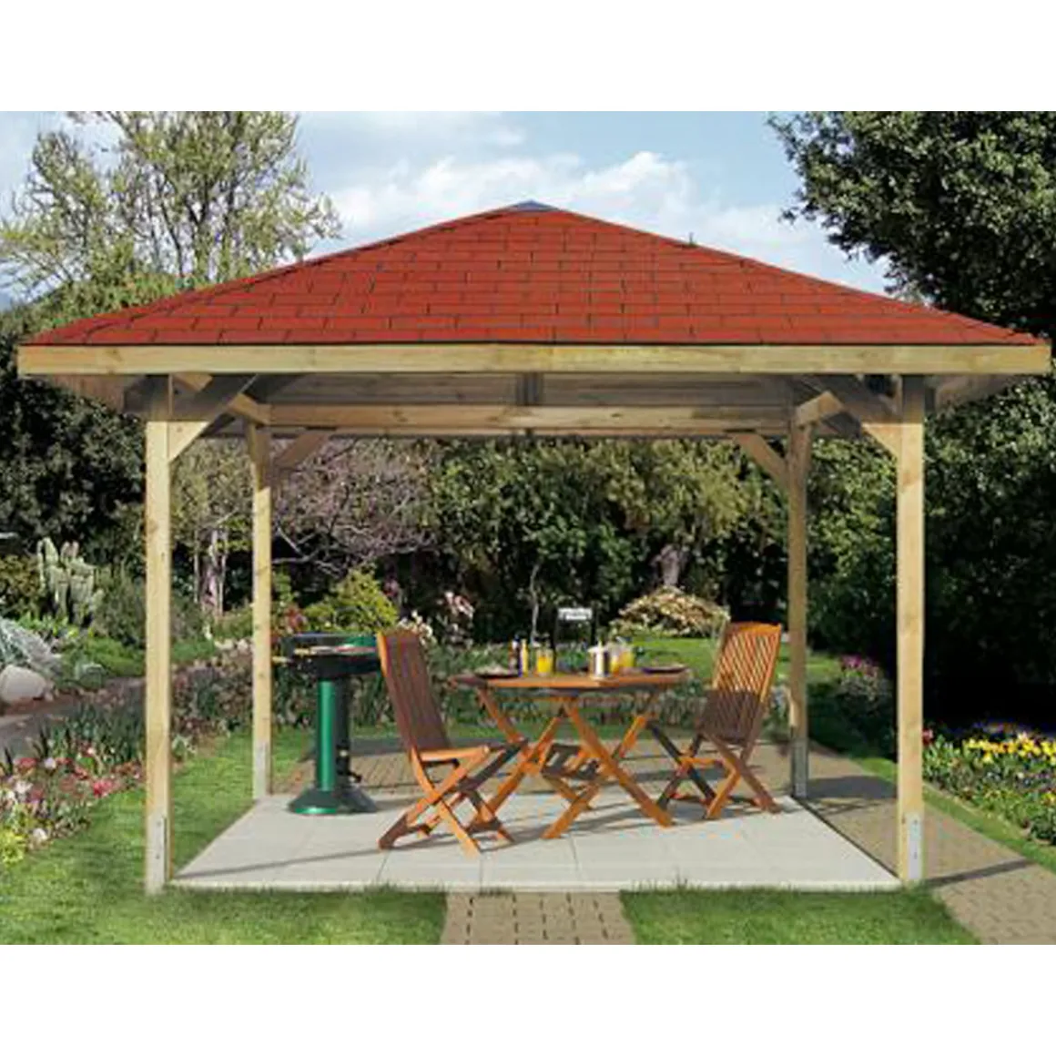 - Material Dacheindeckung: Massivholzdach mit Dachschindeln rot (Bedarf: 9 m²)