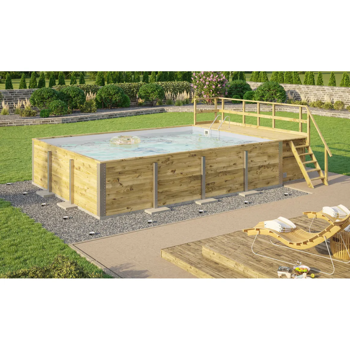 Weka Pool Rechteckig Größe 2 b 401,5 x 641,5 cm inkl Technikraum/Sonnendeck und FilteranlageFolie hellgrau