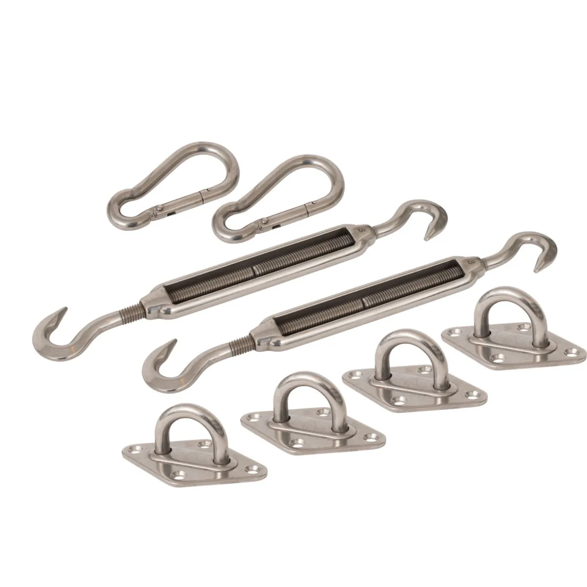 Mit dem Windhager Befestigungsset für Sonnensegel können Sie Ihr Sonnensegel sicher und stabil montieren. Das Set besteht aus 2 Spannankern, 2 Karabinerhaken und 4 Halteösen aus Edelstahl.