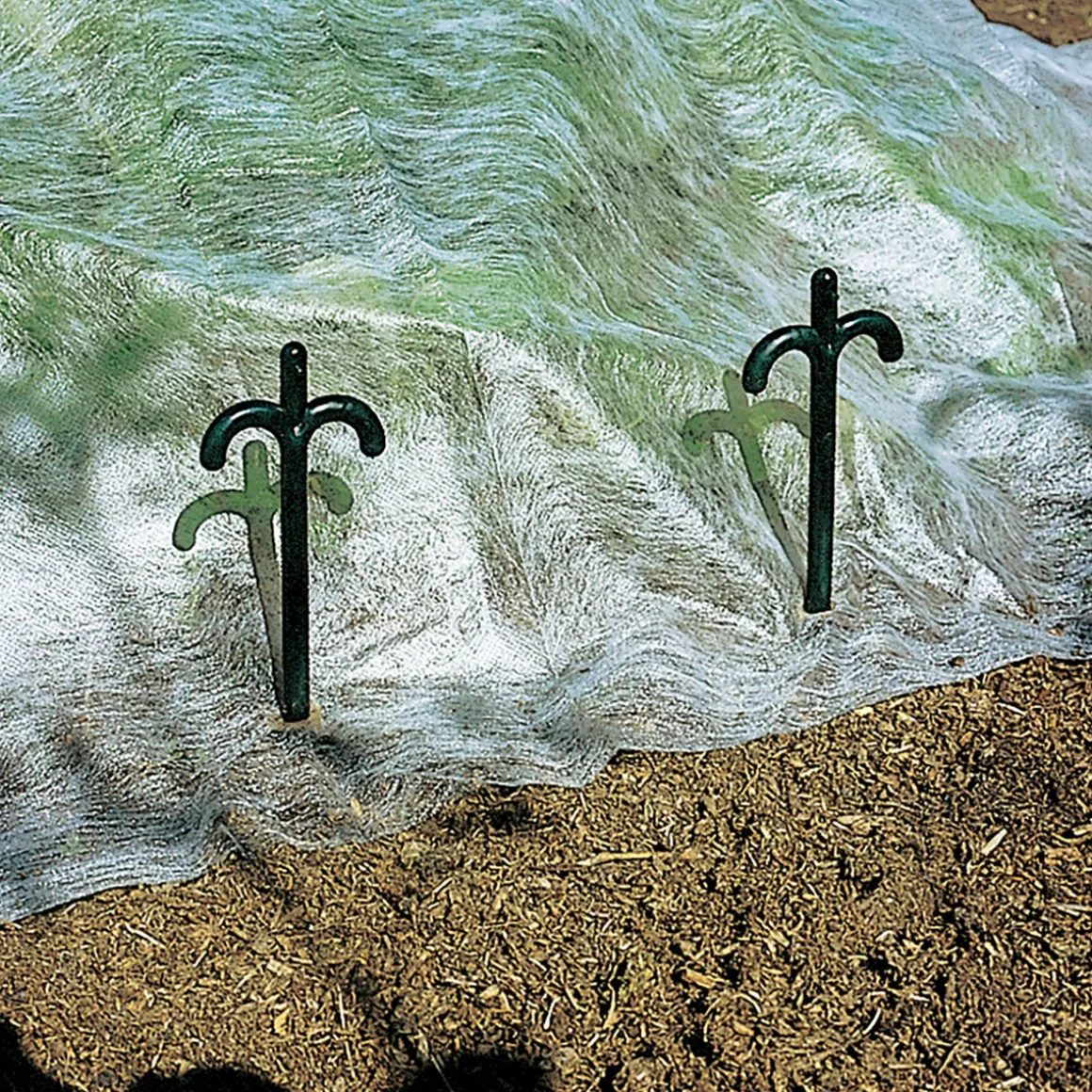 - Folien, Vliese und Gewebe mit Erdnägeln im Boden verankern