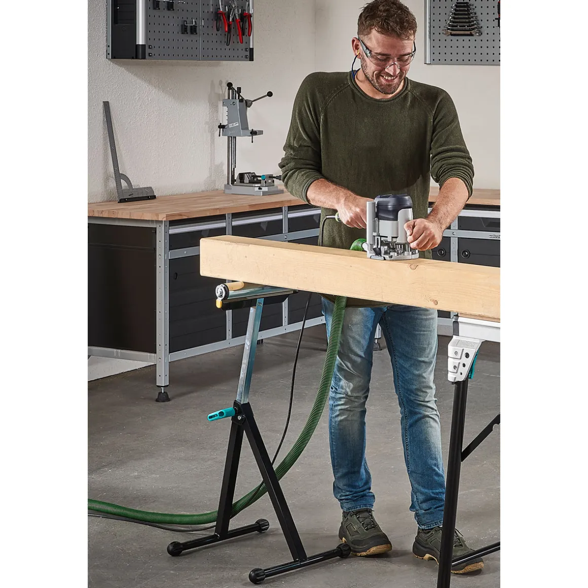Mit dem Wolfcraft Rollenbock wird das Arbeiten an langen Werkstücken zum Kinderspiel. Die robuste Konstruktion aus Metall und Kunststoff sorgt für eine hohe Belastbarkeit von bis zu 60 kg. Durch die verstellbare Arbeitshöhe von 640 mm bis 1.000 mm ist der Rollenbock flexibel einsetzbar und eignet sich perfekt für Sägetische, Werkbänke und Rasentrimmer.