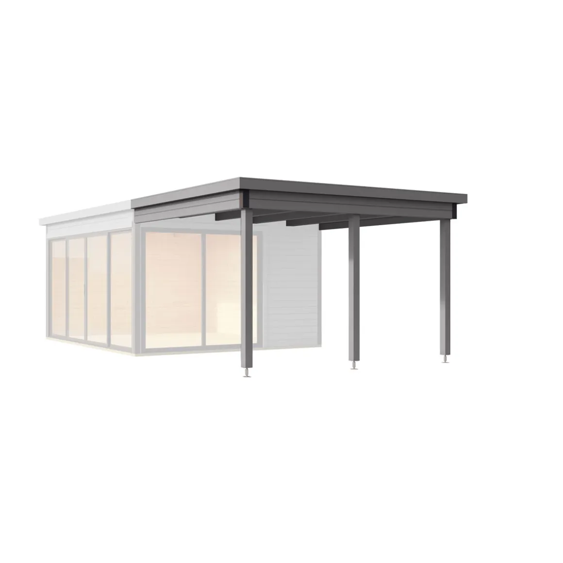 Mit dem Anbau für das Designhaus 412 in der Größe 2 in hellgrau erweitern Sie Ihren Wohnraum im Garten. Der Anbau bietet zusätzliche Fläche und ist perfekt auf das Hauptgebäude abgestimmt.