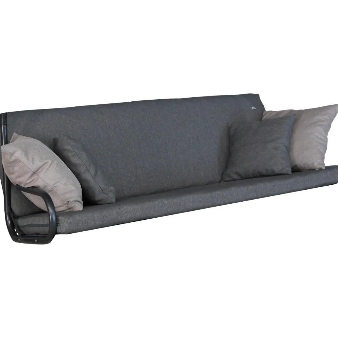 Die Angerer Hollywoodschaukel Auflage Smart stone ist passend für viele 3-Sitzer Hollywoodschaukeln mit einer Sitzbreite von ca. 180 cm. Sitz- und Lehnenkissen, sowie die vier Sofakissen sind aus einem besonders weichen und hochwertigen Möbelstoff gefertigt. Die Kissenbezüge sind dank praktischer Reißverschlüsse abnehmbar und waschbar.