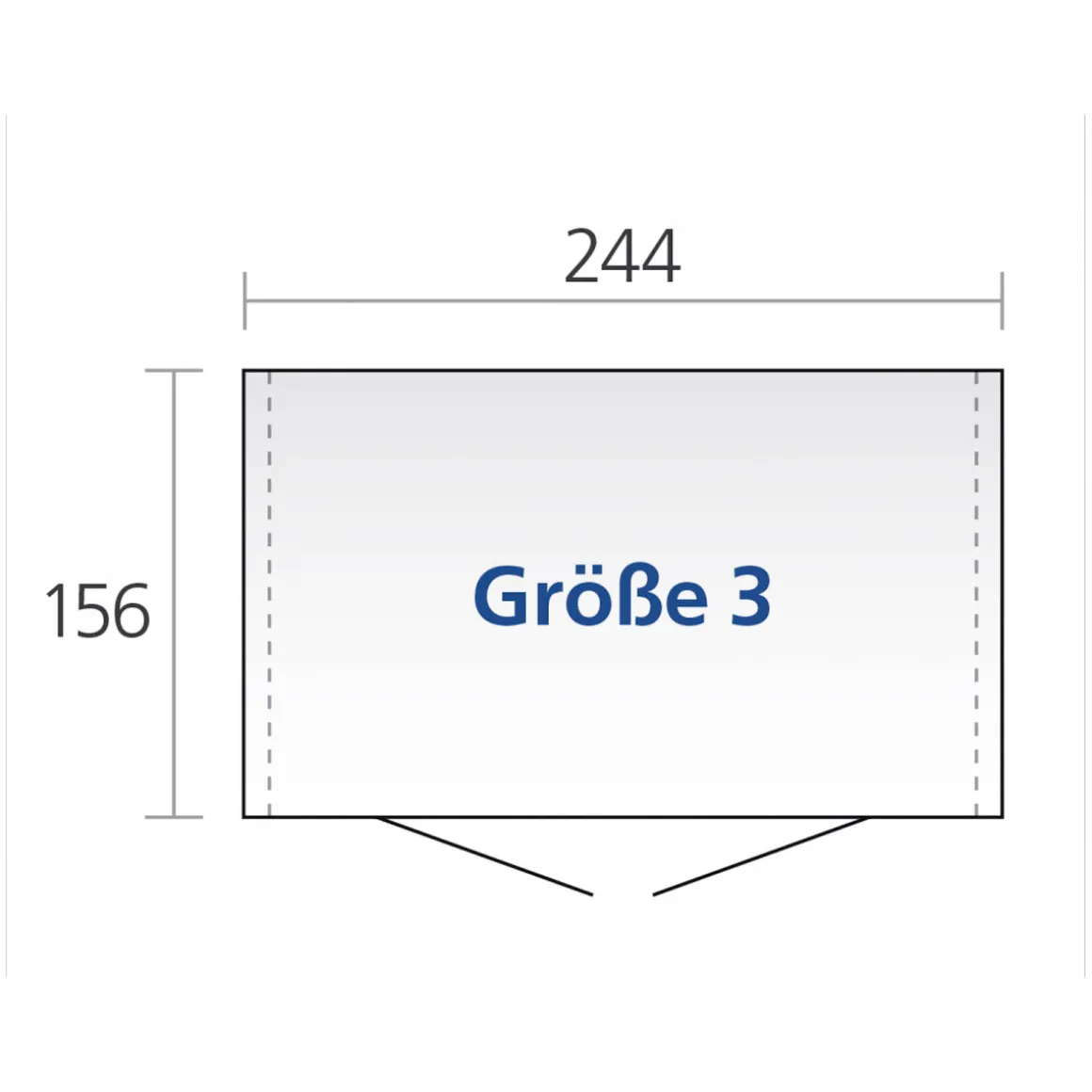 - Außenmaße (BxLxH=Trauf) (cm): 244x156x203