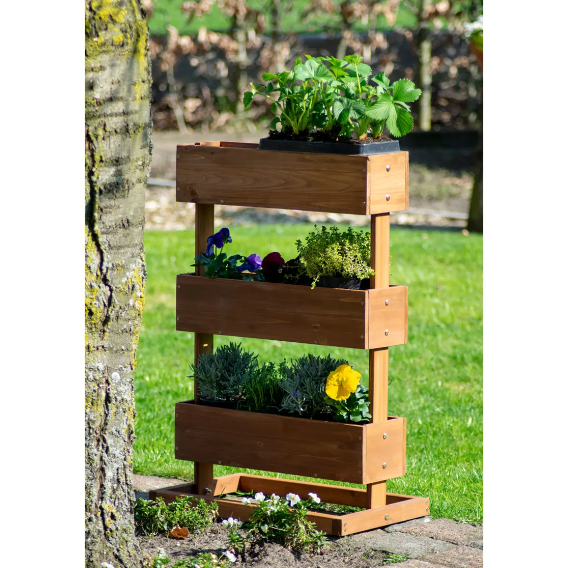Sie träumen von einem grünen Paradies, das selbst auf kleinstem Raum gedeiht? Dann ist das dobar Vertikalbeet genau das Richtige für Sie! Mit seinem platzsparenden Design und der hochwertigen Verarbeitung aus wetterfest lasiertem Kiefernholz bringt es Natur pur direkt zu Ihnen nach Hause. Ob als Blumenbeet oder Kräuterbeet – dieses Hochbeet verwandelt Ihren Balkon, Ihre Terrasse oder Ihren Garten in eine grüne Oase voller Leben. Die drei separaten Pflanzkästen mit integrierter Pflanzfolie bieten Ihnen die Möglichkeit, Ihre Lieblingspflanzen individuell zu arrangieren und optimal zu pflegen. Lassen Sie Ihrer Kreativität freien Lauf und genießen Sie die Freude am Gärtnern!