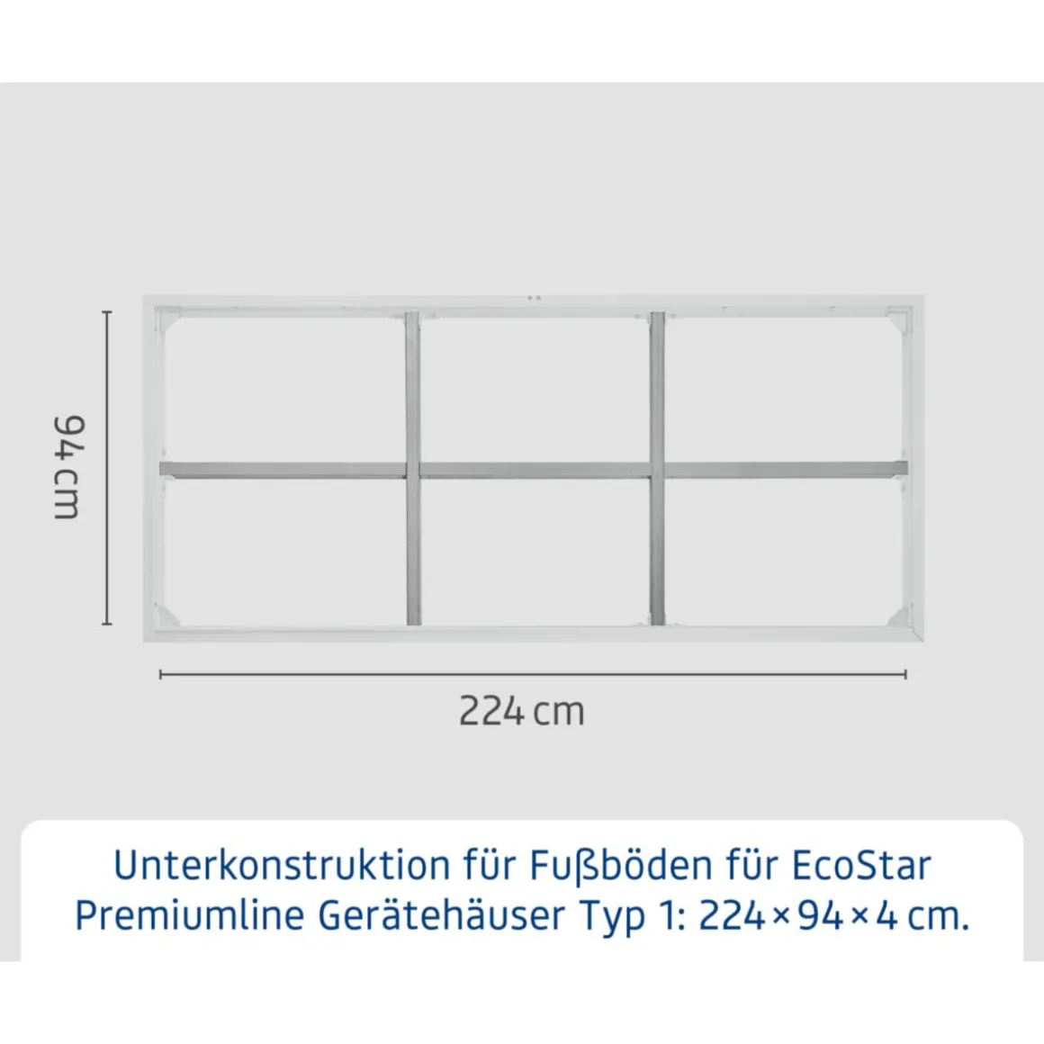 Um die optimale Belastbarkeit des EcoStar Riffelblechbodens zu geben, sollten Sie diesen mit der passenden Unterkonstruktion kombinieren. Die Anbringung der Konstruktion ist sehr einfach und gibt eine tragfähige, belastbare Bodenfläche in Ihrem EcoStar Gerätehaus.