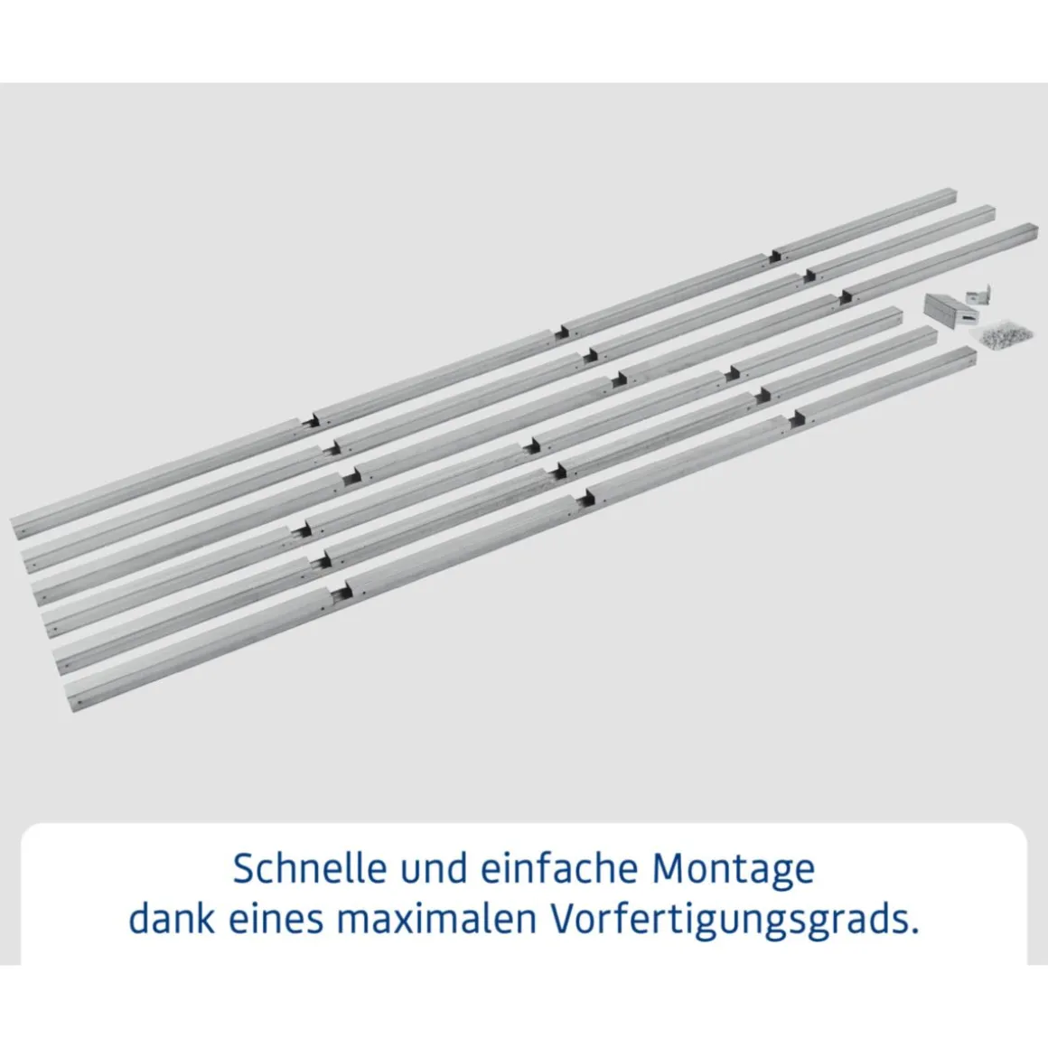 Um die optimale Belastbarkeit des EcoStar Riffelblechbodens zu geben, sollten Sie diesen mit der passenden Unterkonstruktion kombinieren. Die Anbringung der Konstruktion ist sehr einfach und gibt eine tragfähige, belastbare Bodenfläche in Ihrem EcoStar Gerätehaus.