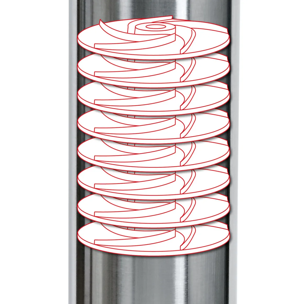 - Achtstufiges Pumpenlaufwerk sorgt für gleichmäßige Leistung und hohe Effizienz bei jeder Anwendung