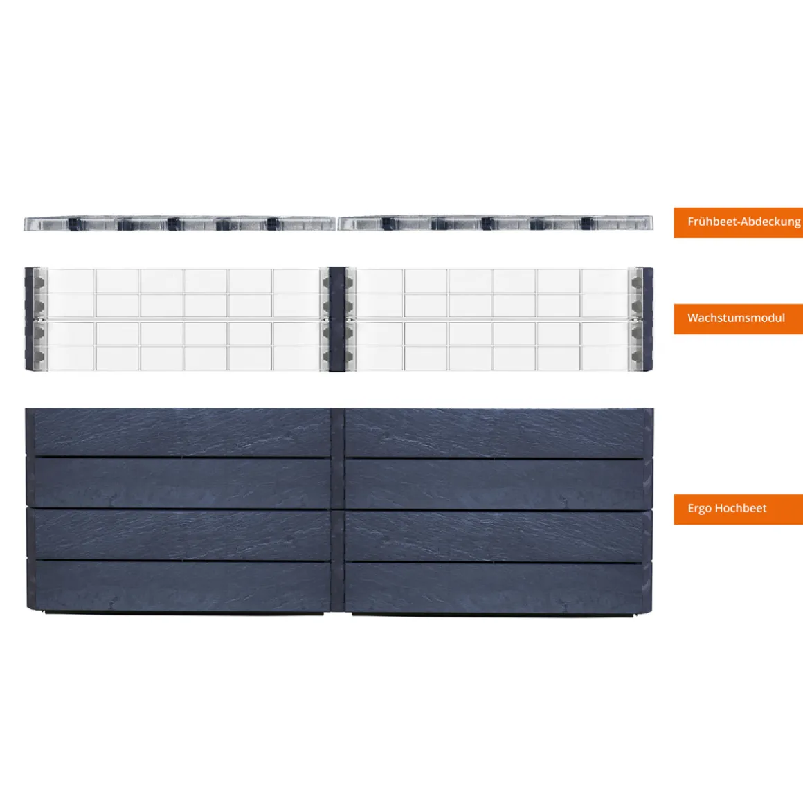 Garantia ERGO Hochbeet QUADRO TurboPlus 2 L 80 – Set bestehend aus 18 Paneelen inkl. Steckverbinder und Frühbeet-Abdeckung. Ergonomisches Arbeiten in bequemer Höhe – jederzeit flexibel erweiterbar. Das ERGO QUADRO Hochbeetsystem ist ein modular konzipiertes Hochbeet und ermöglicht Ihnen den Aufbau eines an Ihre Bedürfnisse und Platzverhältnisse angepasstes Hochbeet. Das QUADRO 2 L bietet mit seiner klassischen Hochbeet-Größe von 160 x 80 cm, die optimale Größe für den Anbau untschiedlichster Pflanzen. Es ergeben sich vielfältige Gestaltungsmöglichkeiten durch die vergrößerte Anbaufläche. Das ERGO QUADRO Hochbeet überzeugt ebenfalls als Blickfang in Ihrem Garten durch die dekorative Oberfläche in 3D-Steinoptik mit originalgetreuer Schieferstruktur, moderner Farbgebung, Langlebigkeit und UV-Stabilität. Bereits bei der Entwicklung eines GARANTIA Hochbeets wird sehr viel Wert auf ein nachhaltiges Produktdesign gelegt. Dieses Hochbeet wird unter Einsatz von Recyclingkunststoff hergestellt und ist zu 100 % recycelbar. Im Gegensatz zu Hochbeeten aus anderen Materialien muss das ERGO QUADRO Hochbeet nicht gestrichen oder innen mit teurer Folie ausgelegt werden. Durch das im Lieferumfang enthaltene transparente Wachstumsmodul mit optimaler Lichtdurchlässigkeit schützen Sie nicht nur Ihre Pflanzen, sondern müssen auch auf eine optimale Sonnen- und Wärmenutzung nicht verzichten. Auch die am Rand platzierten Pflanzen bekommen bereits in der ersten Wachstumsphase im Frühjahr die volle Sonneneinstrahlung zu spüren und Sie können die Fläche Ihres Hochbeetes optimal ausnutzen. Die komfortable Wachstumszone Ihres ERGO Hochbeet-Systems wird durch die passende Frühbeet-Abdeckung optimal ergänzt. Gerade die Jungpflanzen werden zuverlässig vor Witterungseinflüssen wie z. B. Kälte, Starkregen und leichtem Frost geschützt und genießen weiterhin die volle Sonneneinstrahlung. Die Frühbeet-Abdeckung mit ihren integrierten Bewässerungsmulden und der individuellen Belüftungsmöglichkeit, schafft Ihnen ein gesundes und schnelles Pflanzenwachstum. Das im Lieferumfang enthaltene FLORA Wassersparsystem führt zusätzlich noch einen reduzierten Wasserverbrauch herbei. Durch die Befüllung mit Kompost und Gartenerde entsteht ein idealer Nährboden für die Pflanzenanzucht. Dank des guten Klimas im Inneren des Hochbeets können Pflanzen schneller reifen – unabhängig von der eigentlichen Bodenbeschaffenheit in Ihrem Garten. Neben Blühpflanzen gedeihen auch viele Gemüsesorten sowie Küchenkräuter und Früchte hervorragend im ERGO QUADRO Hochbeet, eine ertragreiche und gesunde Ernte auf kleinem Raum ist vorprogrammiert. Ungeziefer und Schnecken haben es schwerer die Pflanzen in Ihrem Hochbeet zu erreichen. Dieses Komplett-Set besteht aus insgesamt 18 Paneelen und Frühbeet-Abdeckung, welche durch Steckverbinder einfach und problemlos ohne Werkzeug zusammengesteckt werden. Somit erreicht man eine Höhe von 80 cm und ein Grundmaß von 160 x 80 cm. Qualität Made in Germany. Maße: 160 x 80 x 80 cm (L x B x H).