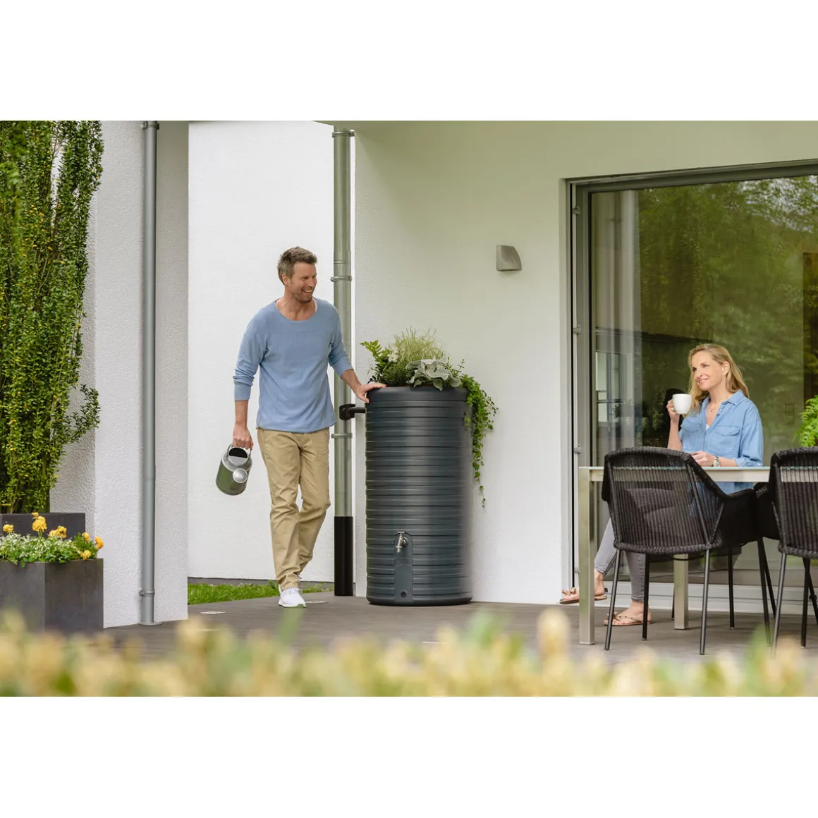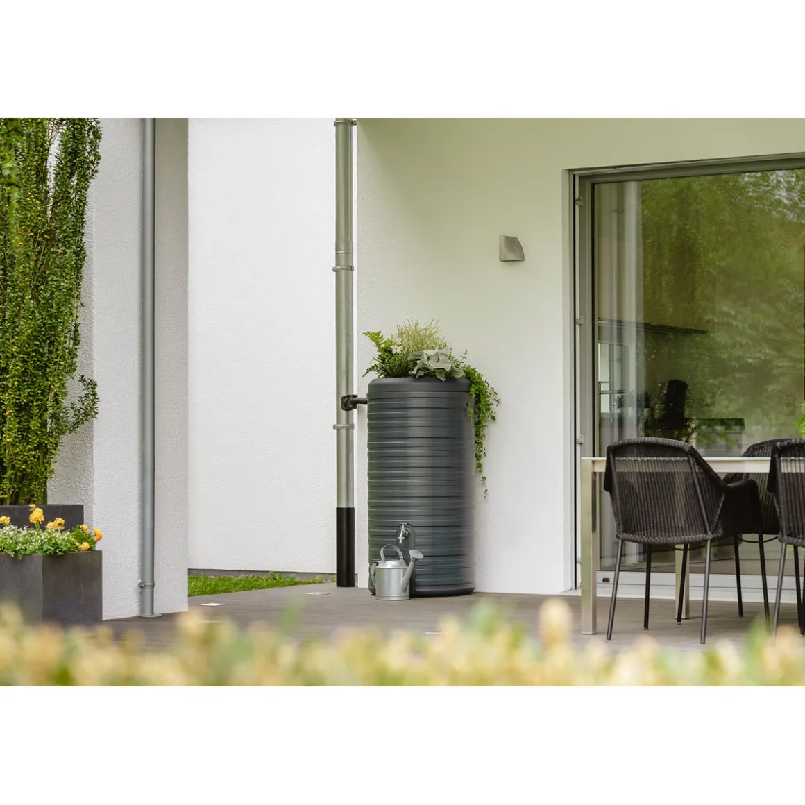 Garantia Regentonne Nordic 2in1 300 Liter graphite grey inkl. Pflanzschale