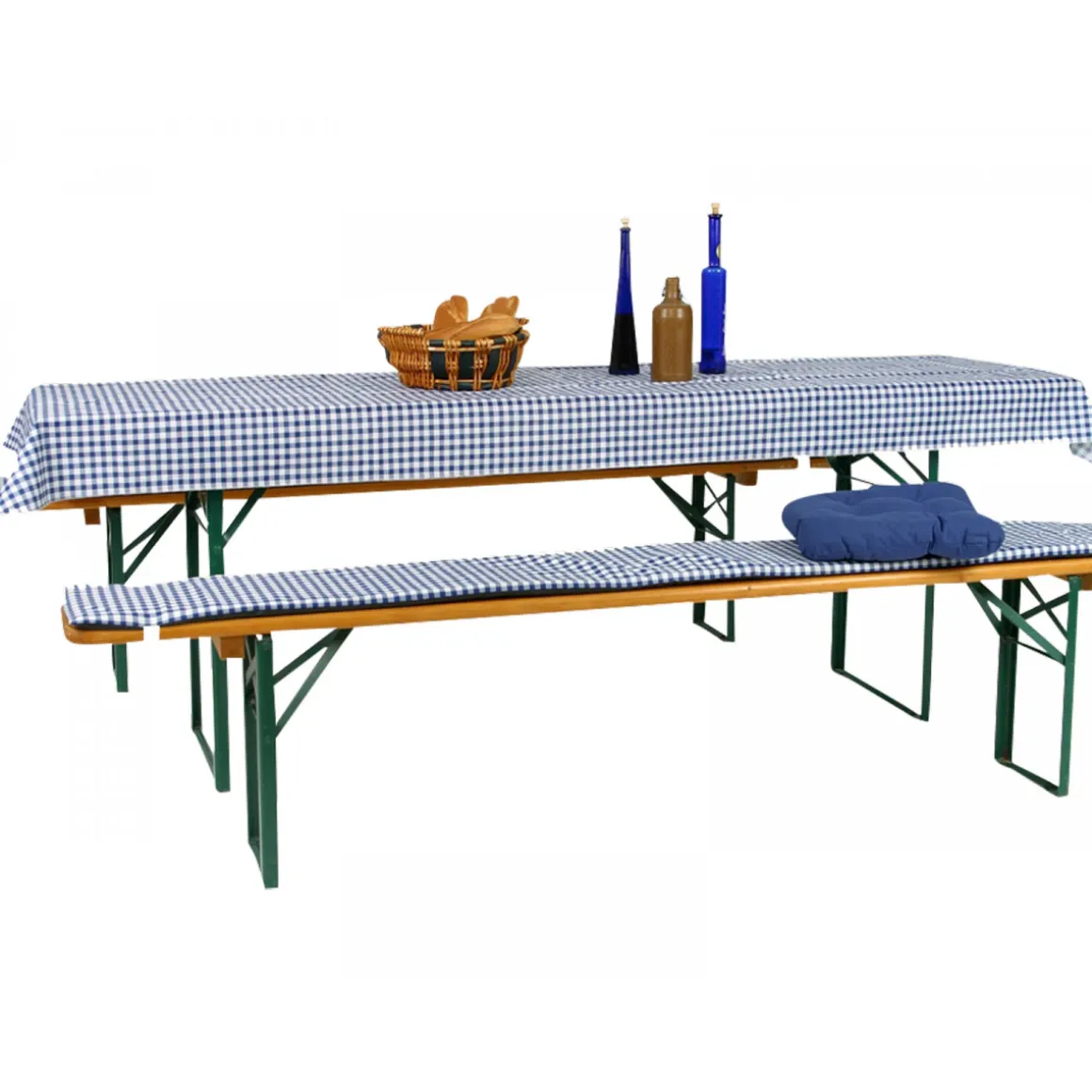 Mit den GO-DE Auflagen für Ihre Bierzeltgarnitur schaffen Sie nicht nur mehr Sitzkomfort, sondern auch eine tolle Atmosphäre. Die Kombination aus dem blauen Karomuster und dem Materialmix aus Baumwolle und Polyester machen diese Bankauflage zu einem echten Blickfang. Bestellen Sie jetzt bei online!