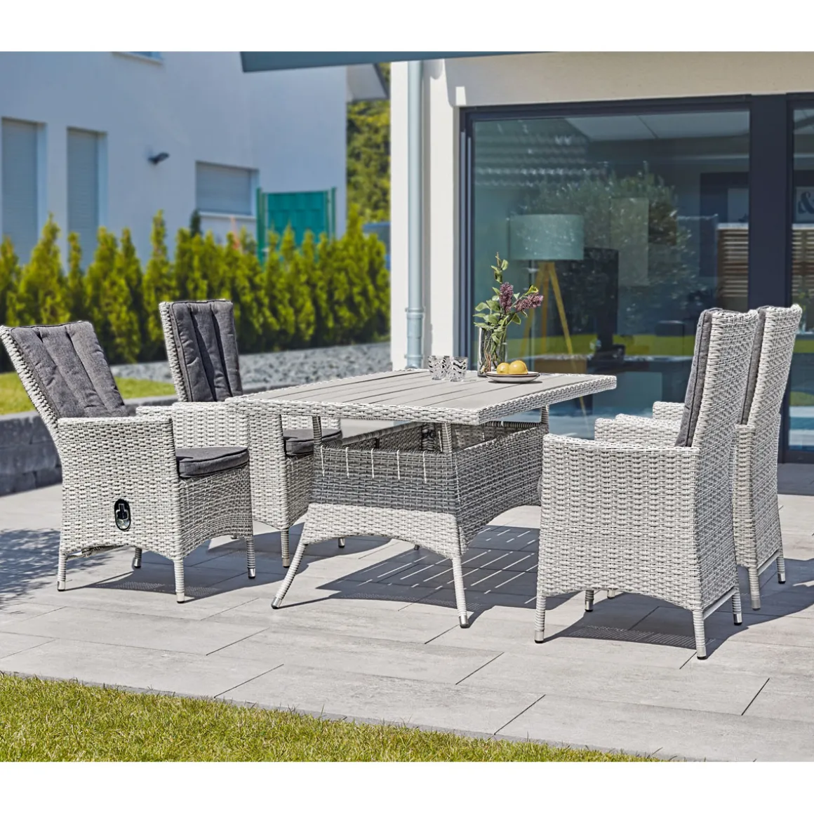Erleben Sie pure Entspannung im Garten oder auf der Terrasse mit dem Haveson Positionssessel Milano in Grau-Meliert. Die verstellbare Rückenlehne und die weichen Auflagen sorgen für maximalen Komfort.