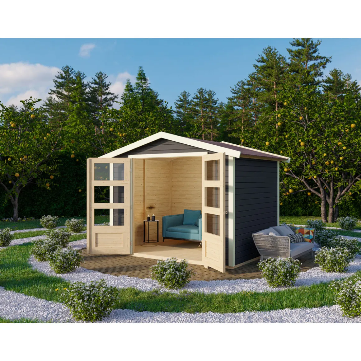 - Gartenhaus aus hochwertiger nordischer Fichte mit wasserabweisender Profilierung