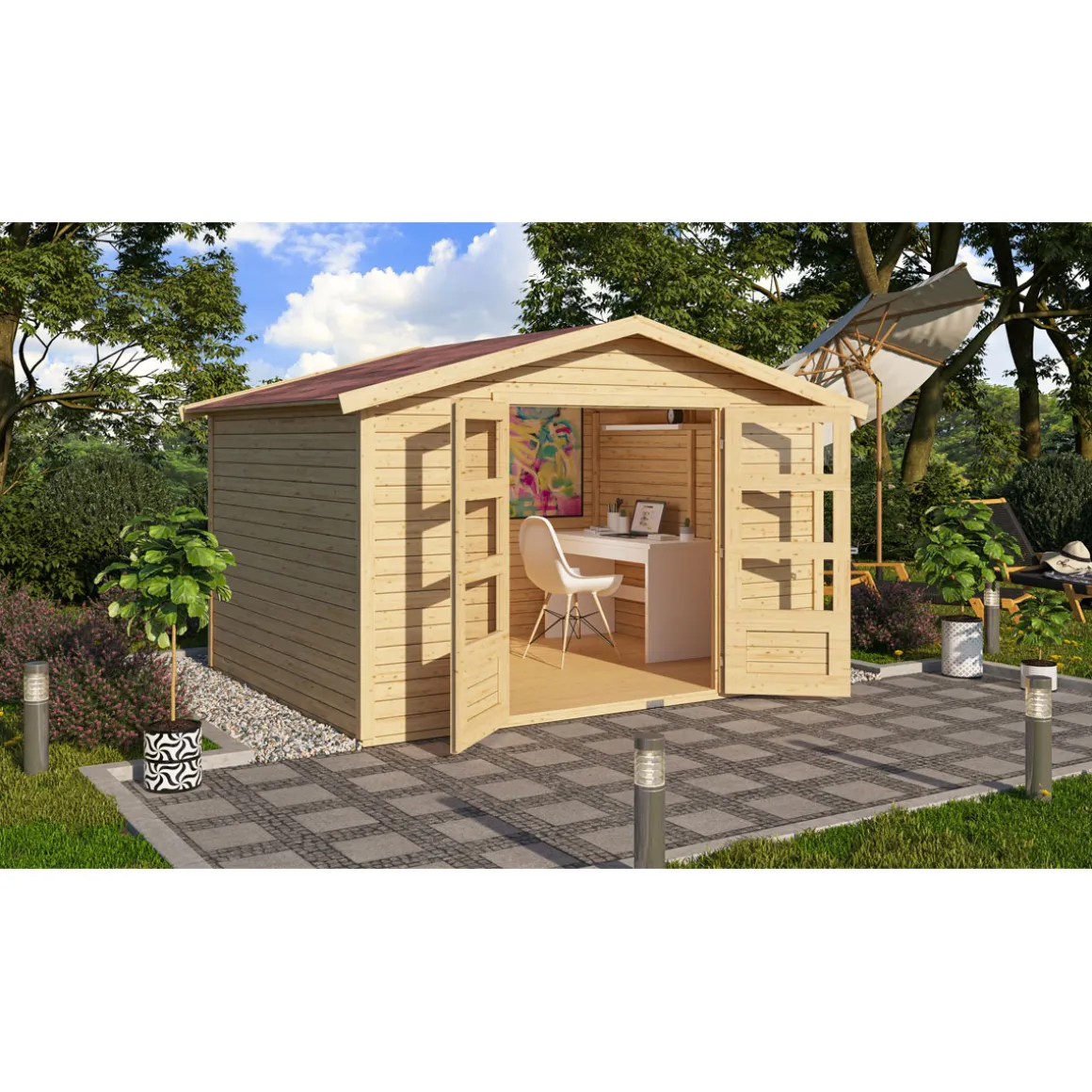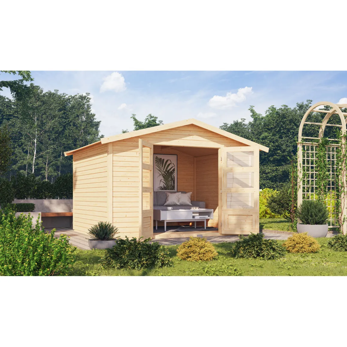 - Gartenhaus aus hochwertiger nordischer Fichte mit wasserabweisender Profilierung