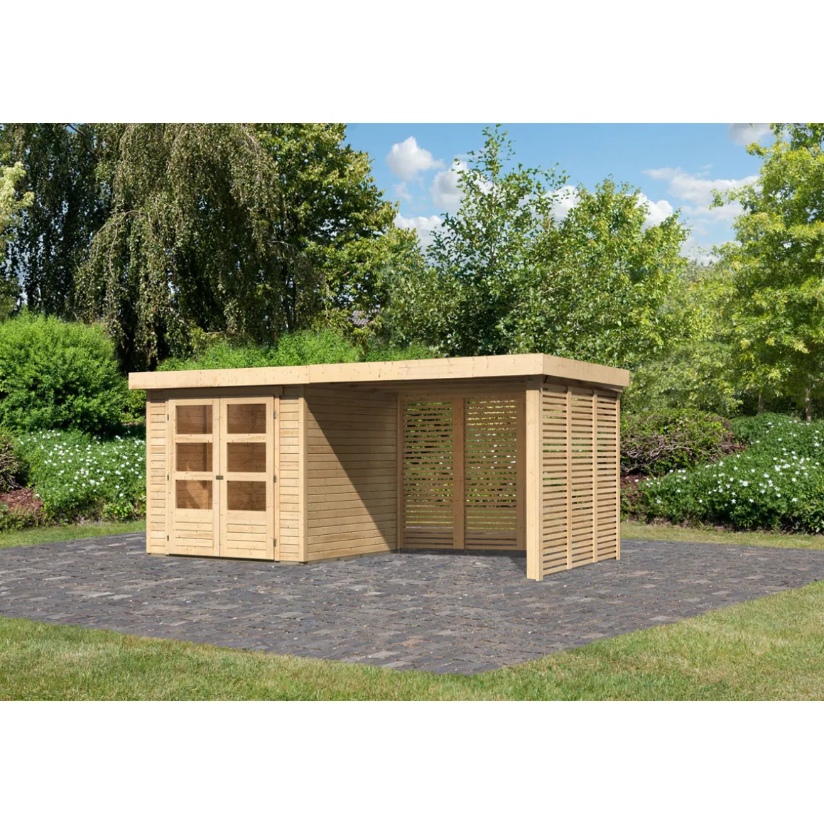Karibu BBH Askola 2 Set mit Anbaudach naturbelassen