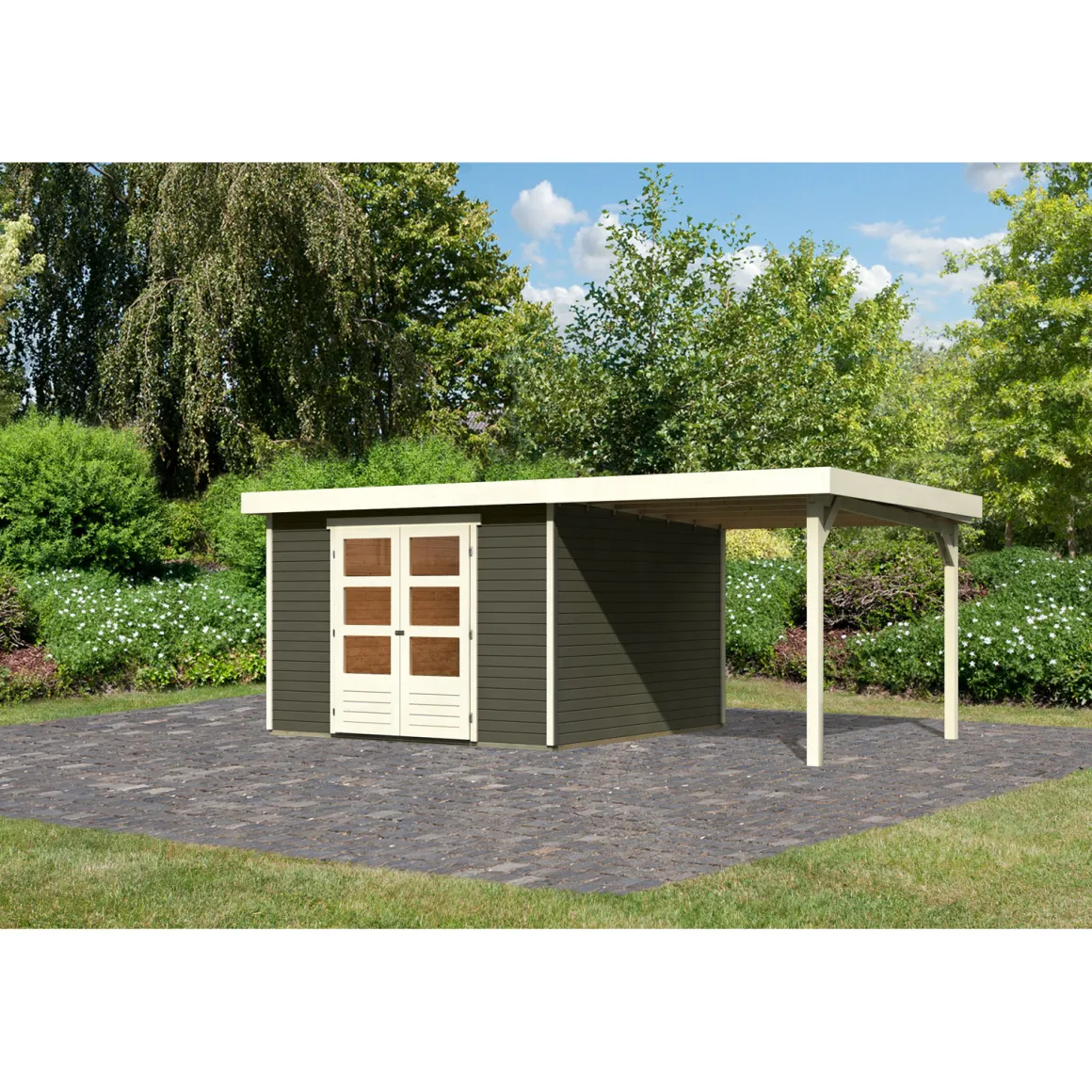 Karibu BBH Askola 6 Set mit Anbaudach terragrau