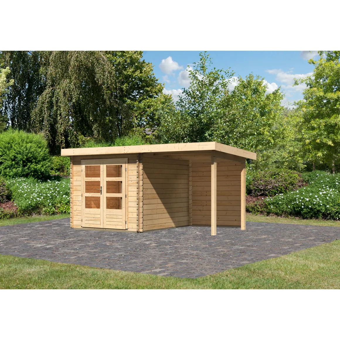 Karibu BBH Bastrup 4 Set mit Anbaudach naturbelassen