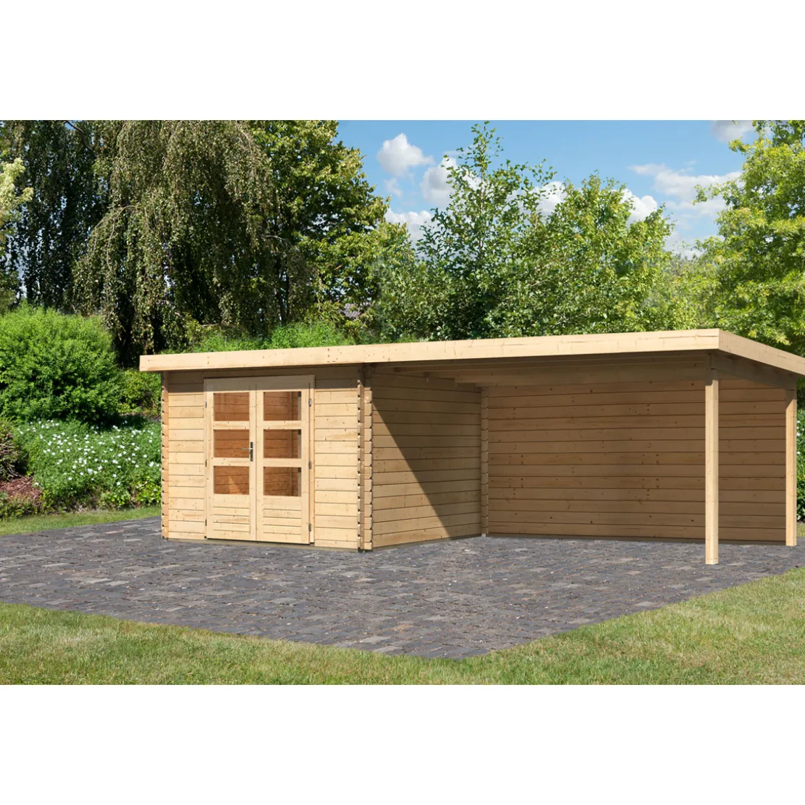 Karibu BBH Bastrup 5 Set mit Anbaudach naturbelassen