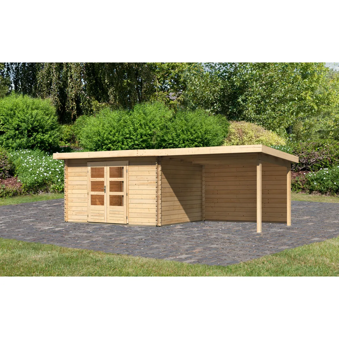Karibu BBH Bastrup 7 Set mit Anbaudach naturbelassen