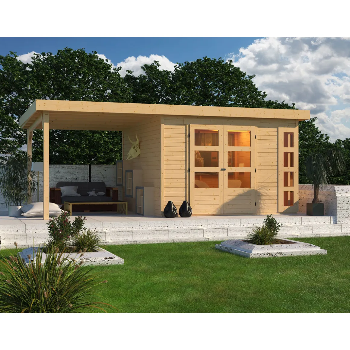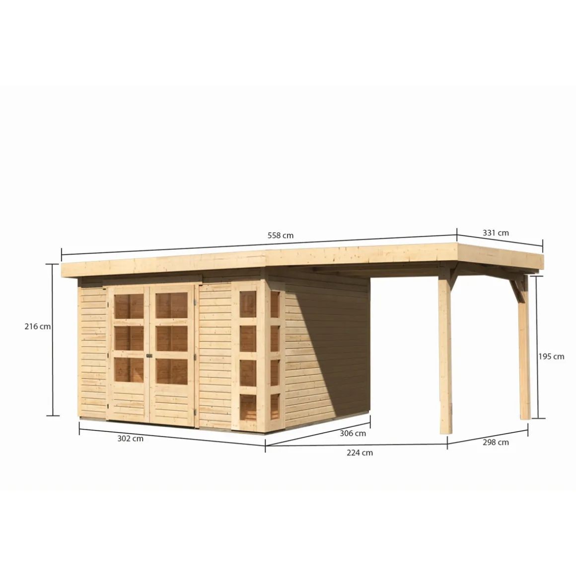 Karibu BBH Kerko 6 Set mit Anbaudach naturbelassen
