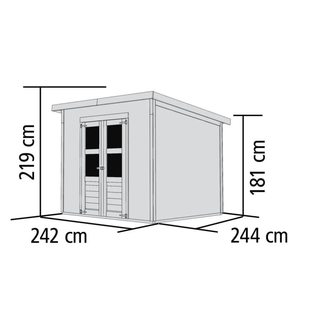 | Außenmaße (BxLxH=Trauf) (cm): | 265 x 266 x 220 |