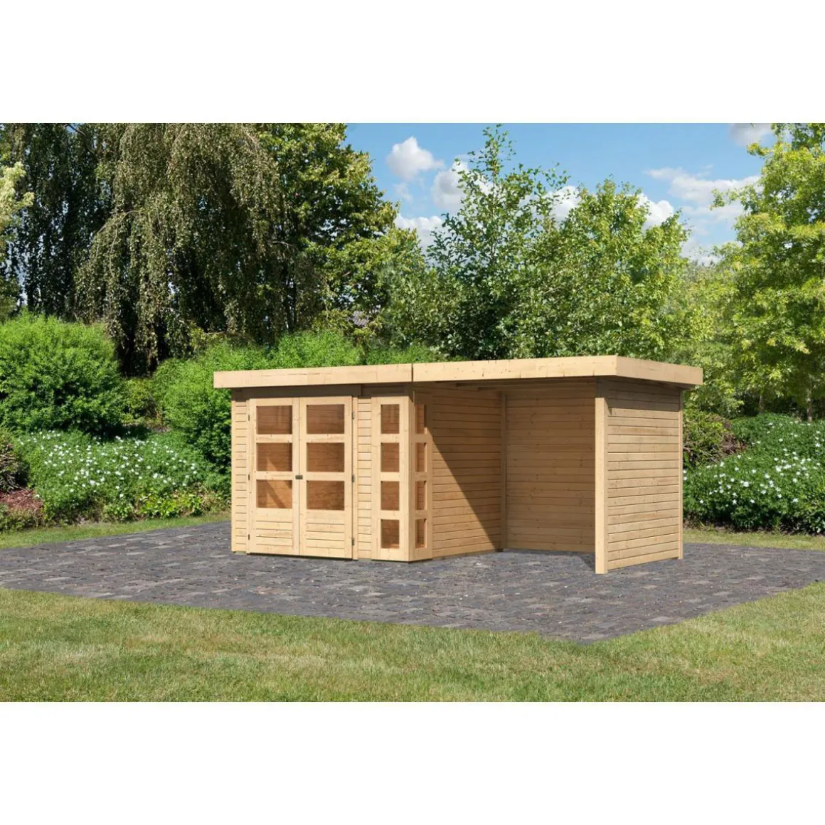 Karibu Gartenhaus-Set Kerko 3 mit Anbaudach 2,4 m mit Seiten- und Rückwand naturbelassen
