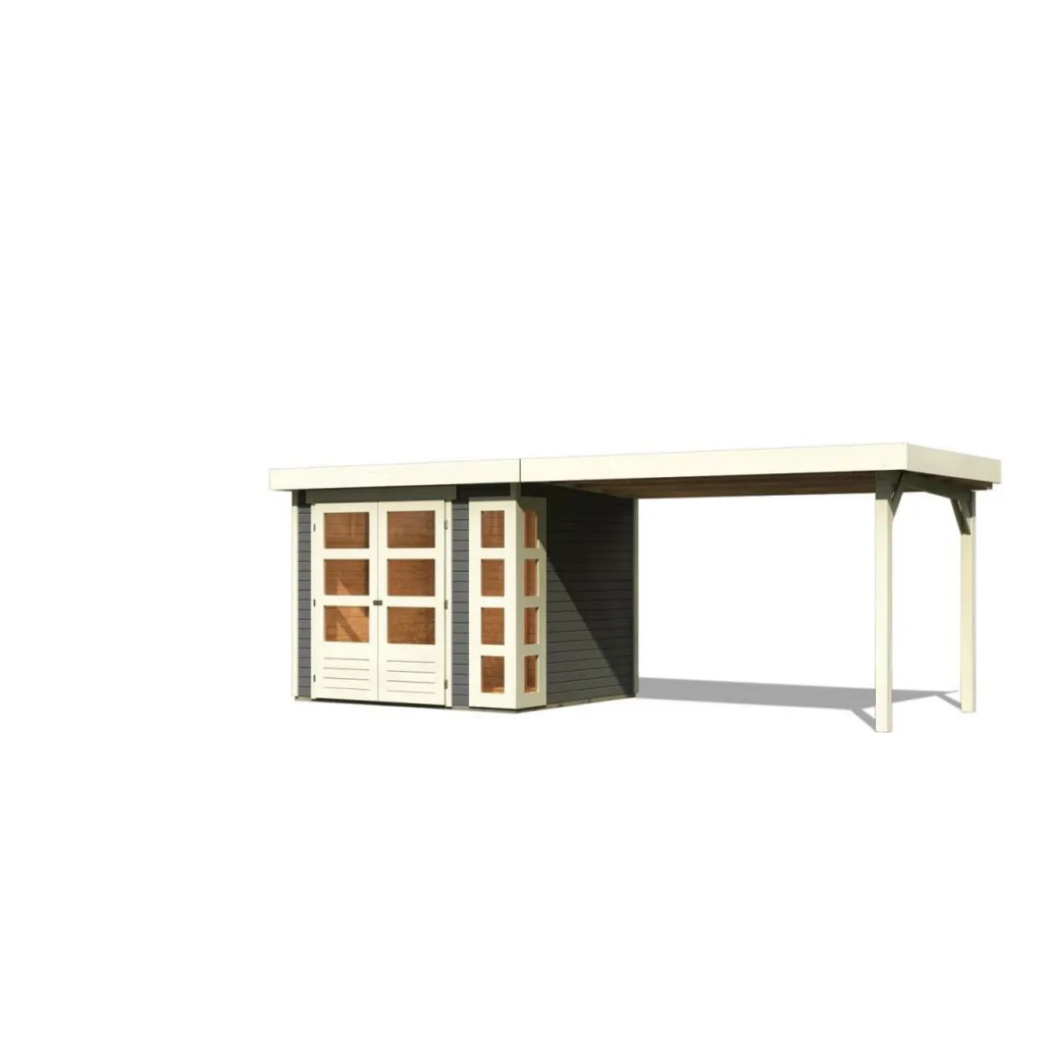 Karibu Gartenhaus-Set Askola 2 mit Anbaudach 2,80 m mit Seiten- und Rückwand terragrau