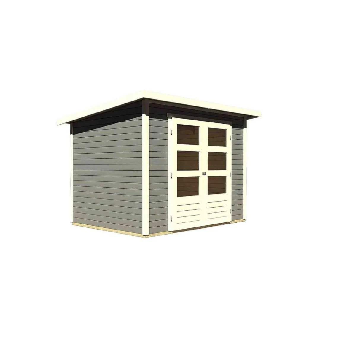 Karibu Gartenhaus-Set Askola 2 mit Anbaudach 2,80 m mit Seiten- und Rückwand terragrau