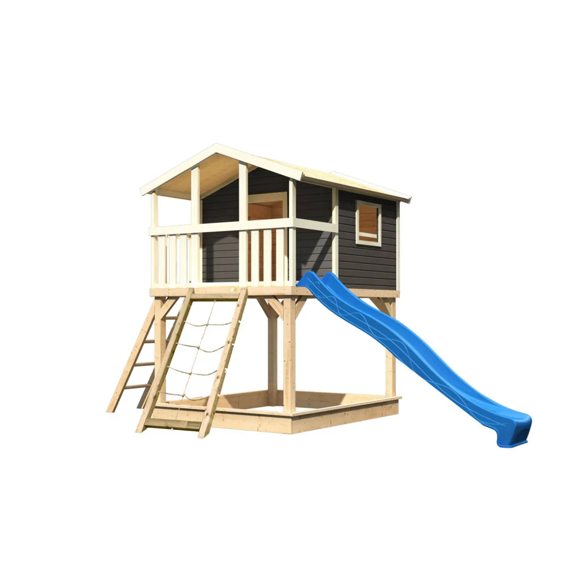 Karibu Stelzenhaus Benjamin natur inkl Rutsche blau und Netzrampe