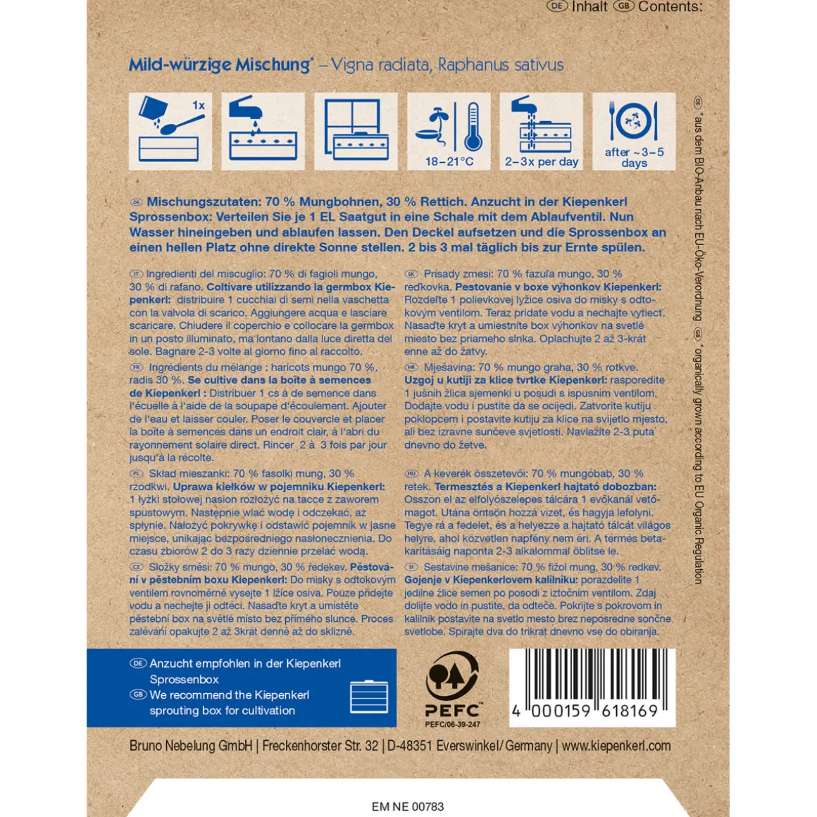 Mit den Kiepenkerl Keimsprossen Mild-Würzige Mischung Bio holen Sie sich gesunde und leckere Sprossen in Ihre Küche. Die Aussaat ist ganzjährig möglich und die Vegetationsperiode beträgt nur 3-5 Tage. Entdecken Sie jetzt die Vorteile dieser Gemüsemischung!